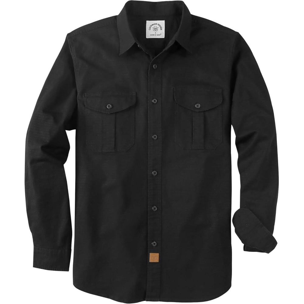 Dubinik® 7oz Mens Button Up Shirts Long Sleeve Casual Button Down Shirt Men Vintage 2 Pocket Sturdy Stretch(Black 056)