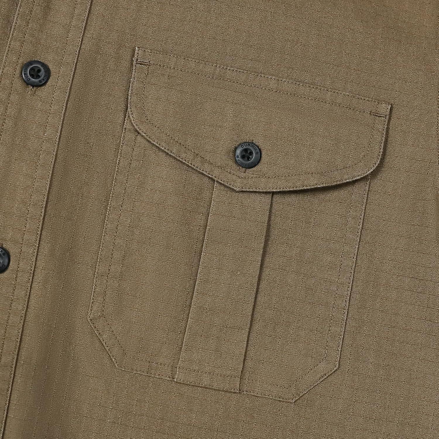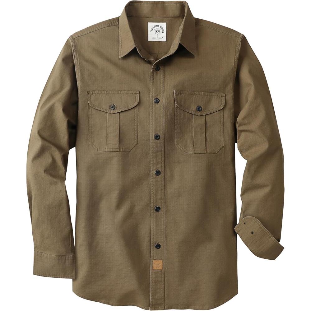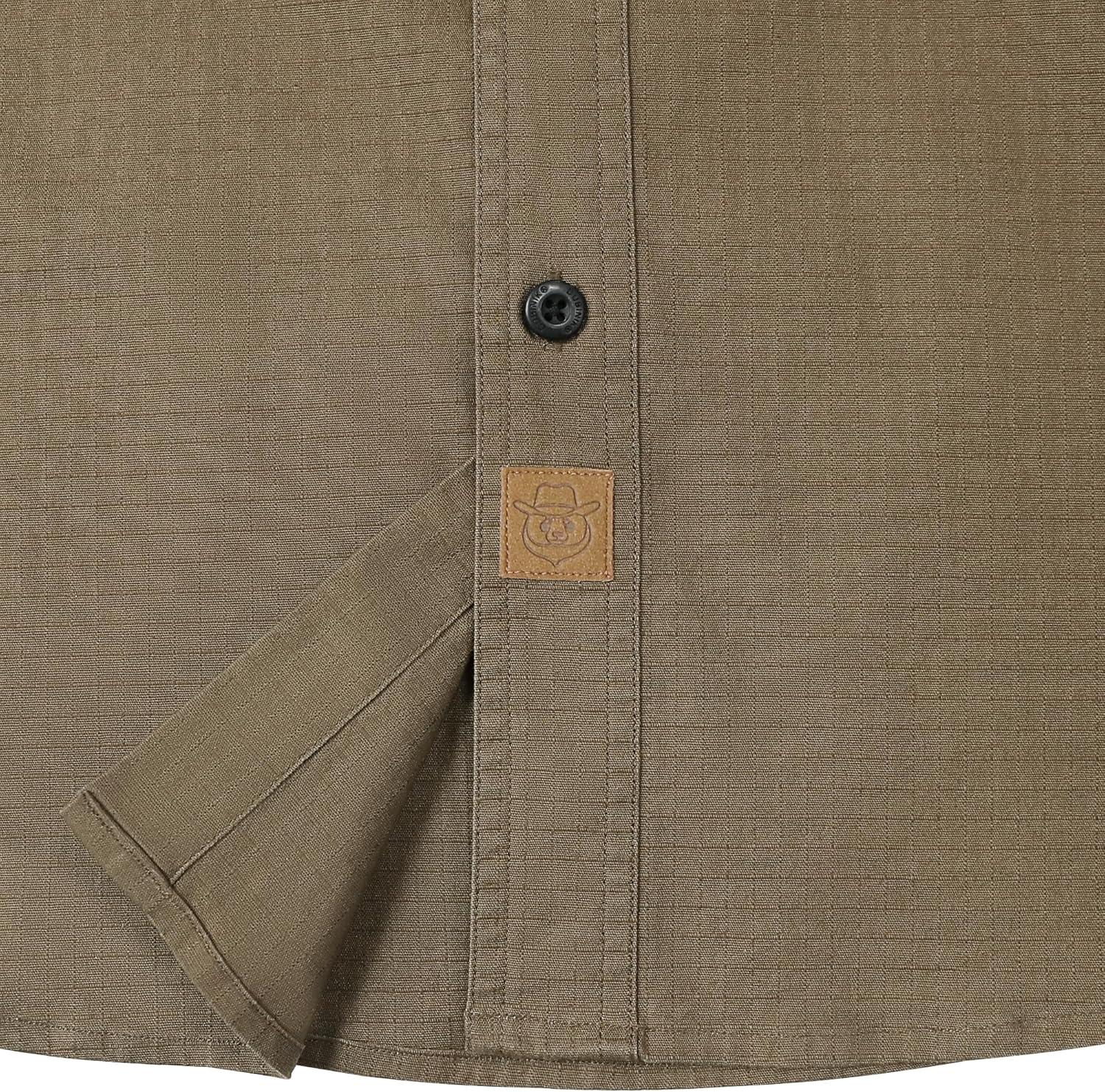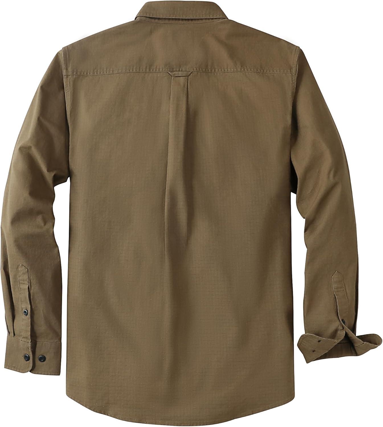 Dubinik® 7oz Mens Button Up Shirts Long Sleeve Casual Button Down Shirt Men Vintage 2 Pocket Sturdy Stretch(Dark Khaki 056)
