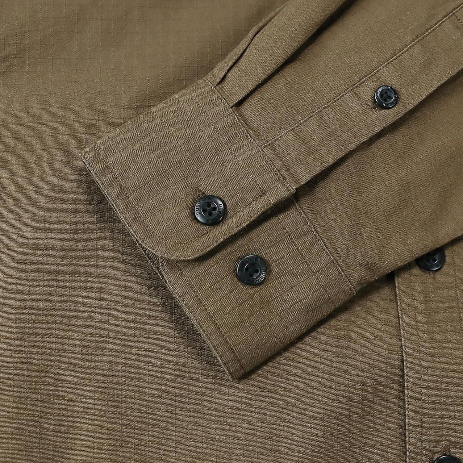 Dubinik® 7oz Mens Button Up Shirts Long Sleeve Casual Button Down Shirt Men Vintage 2 Pocket Sturdy Stretch(Khaki 056)