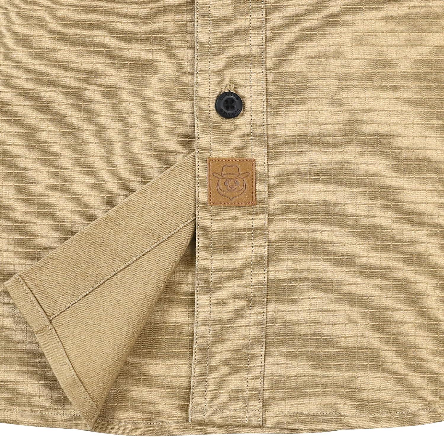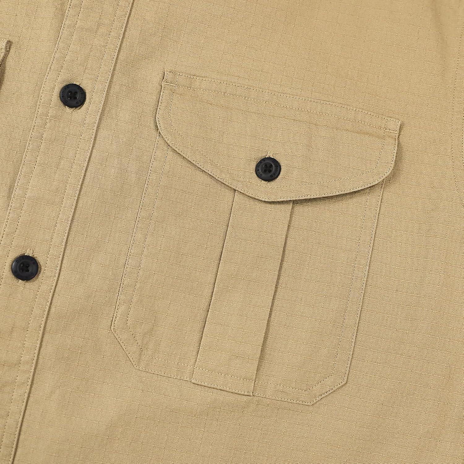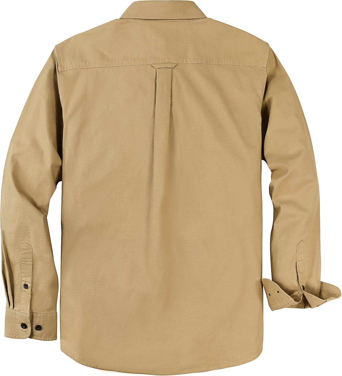Dubinik® 7oz Mens Button Up Shirts Long Sleeve Casual Button Down Shirt Men Vintage 2 Pocket Sturdy Stretch(Khaki 056)