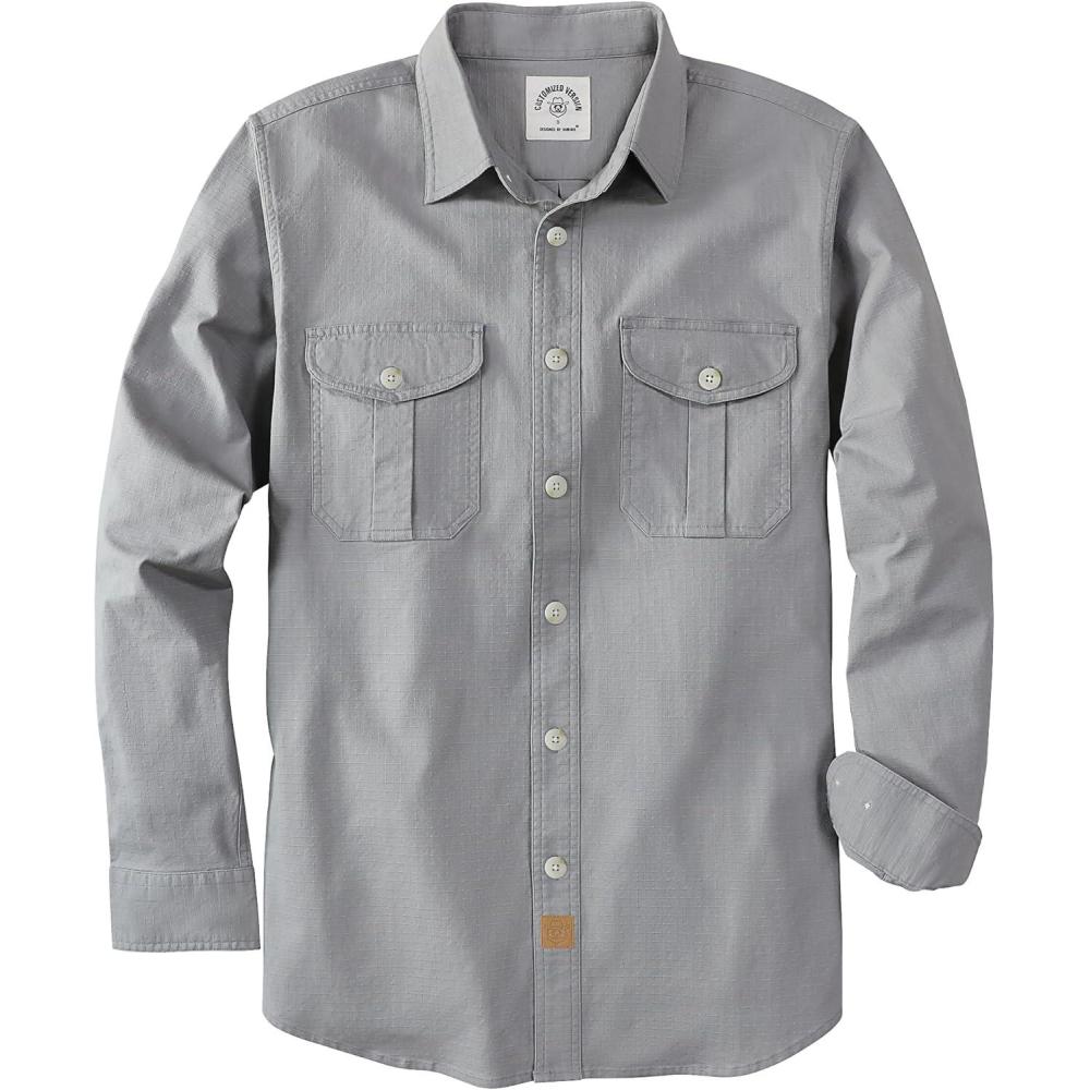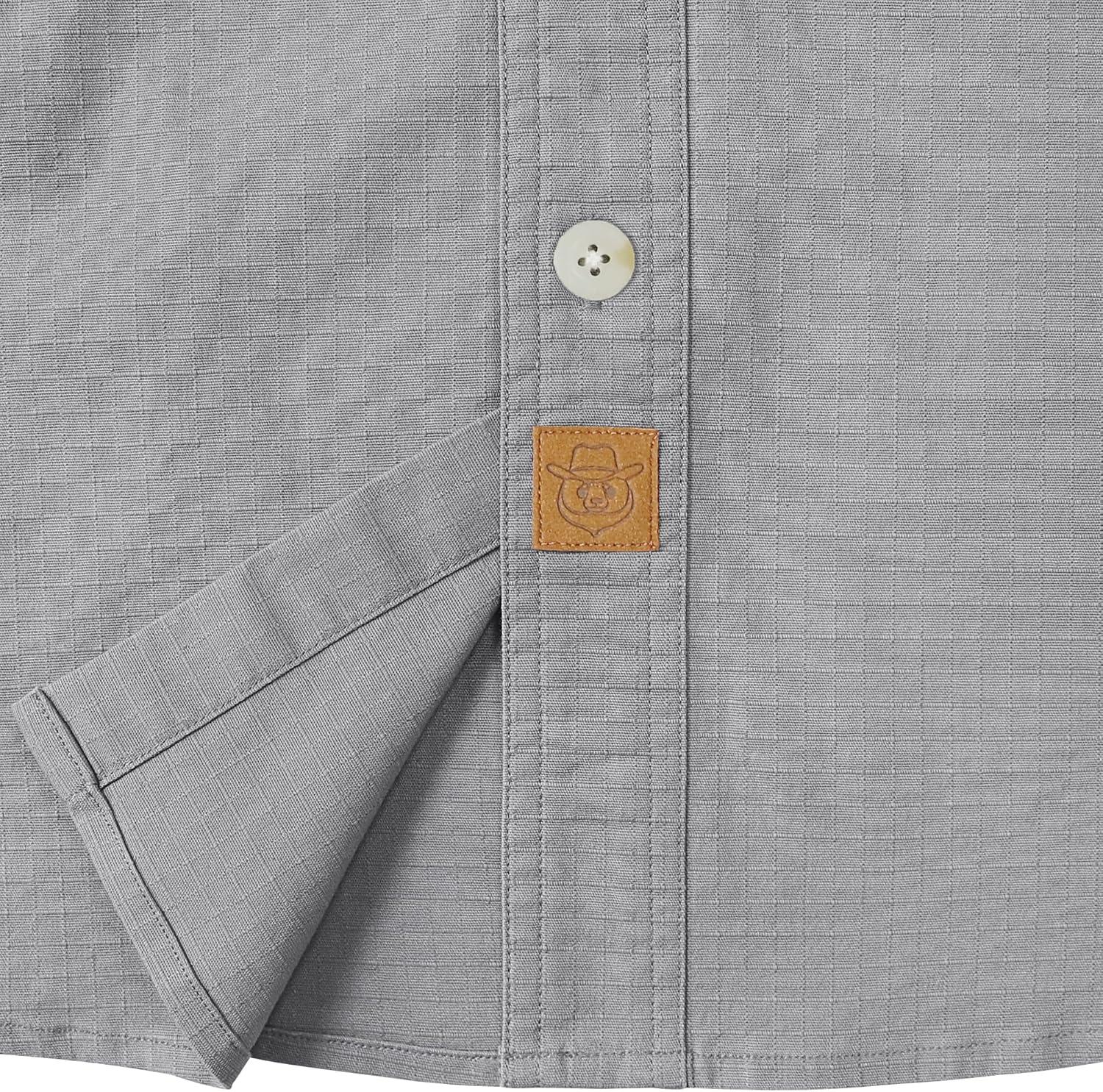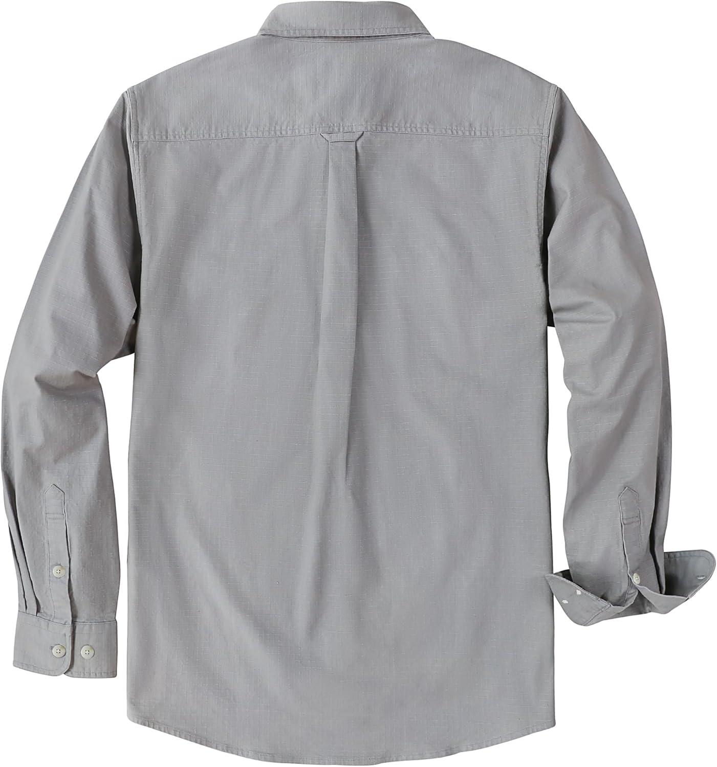 Dubinik® 7oz Mens Button Up Shirts Long Sleeve Casual Button Down Shirt Men Vintage 2 Pocket Sturdy Stretch(Light Gray 056)