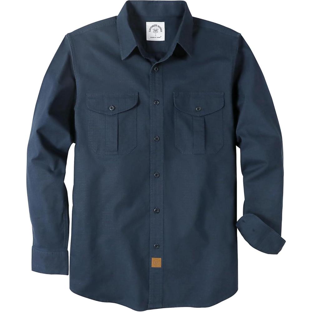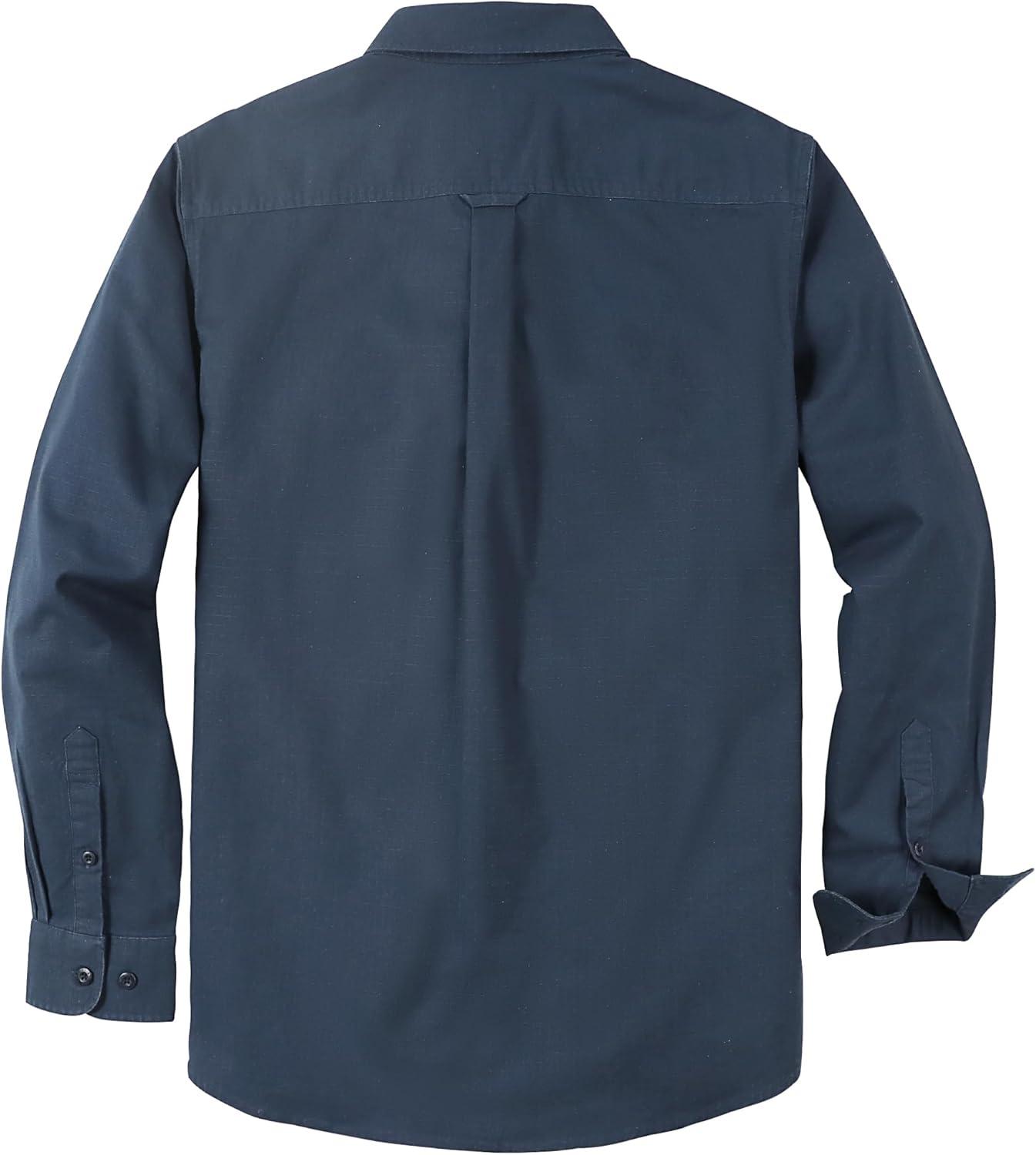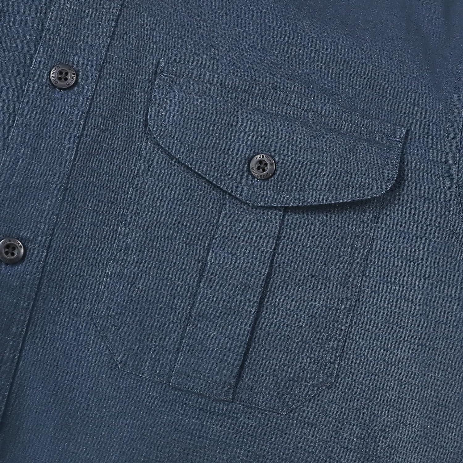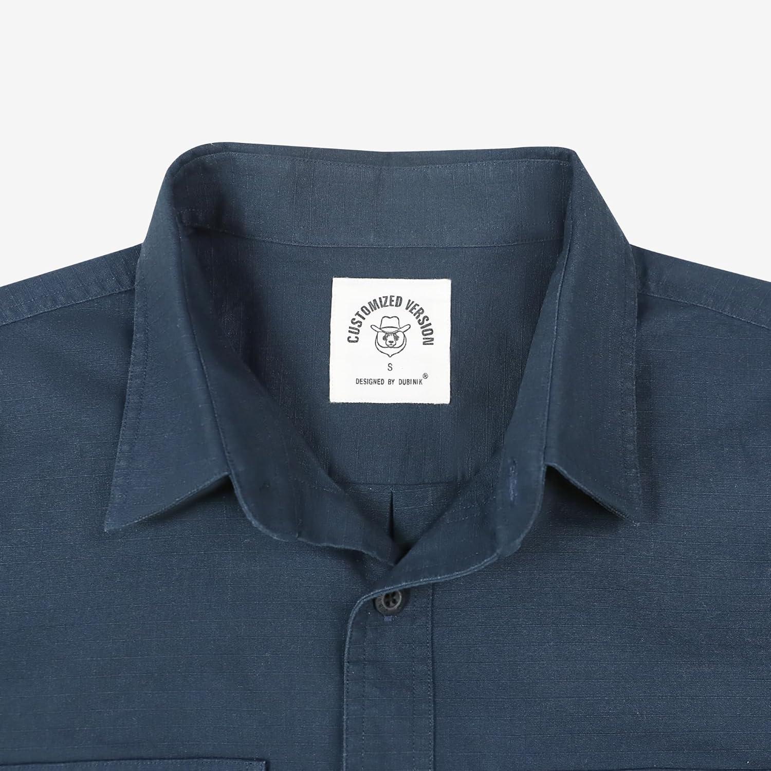 Dubinik® 7oz Mens Button Up Shirts Long Sleeve Casual Button Down Shirt Men Vintage 2 Pocket Sturdy Stretch(Navy Blue 056)