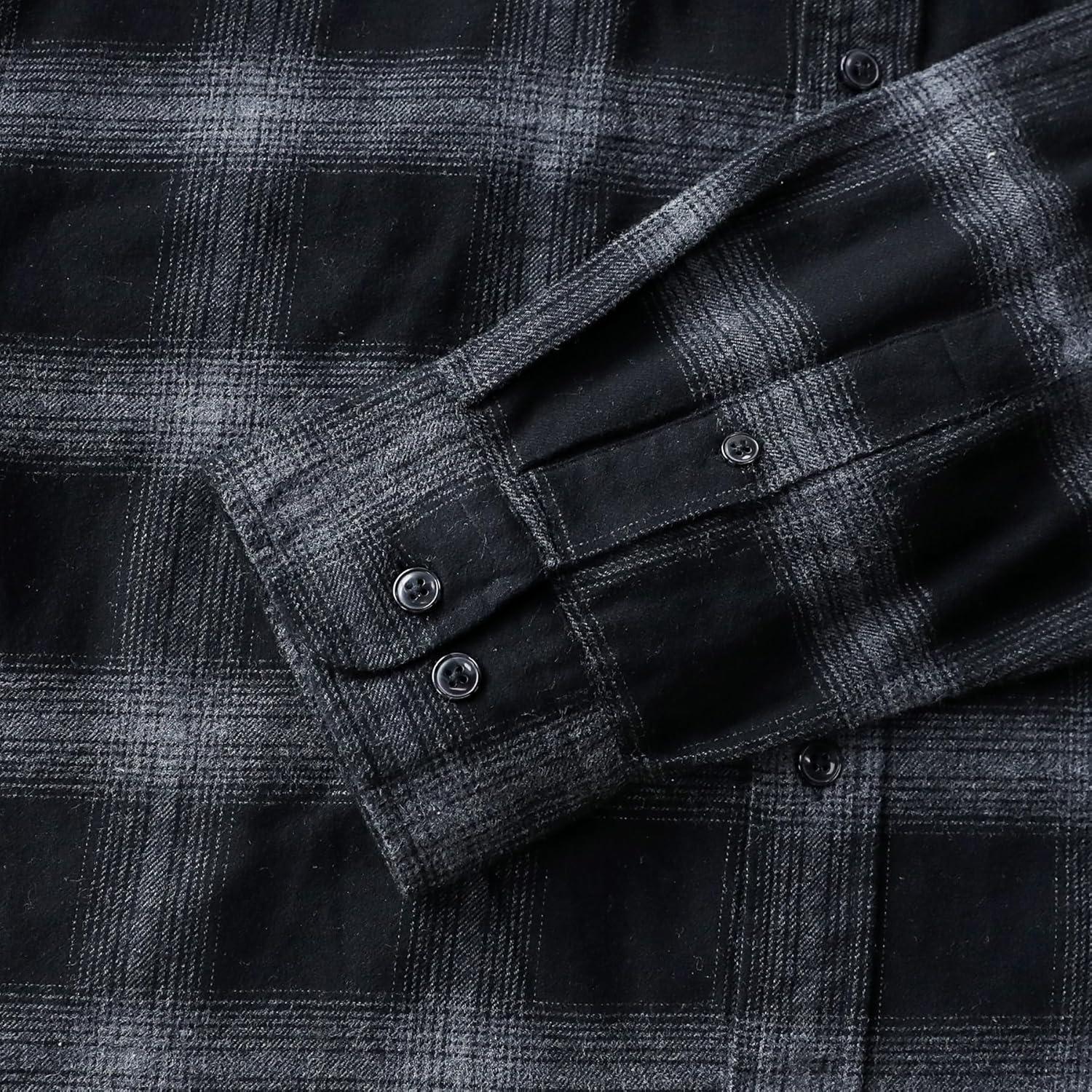 Dubinik® Flannel Shirt for Men 100% Cotton Mens Flannel Shirts Long Sleeve Plaid Soft Casual Button Down Shirt Men(Black Ombre)