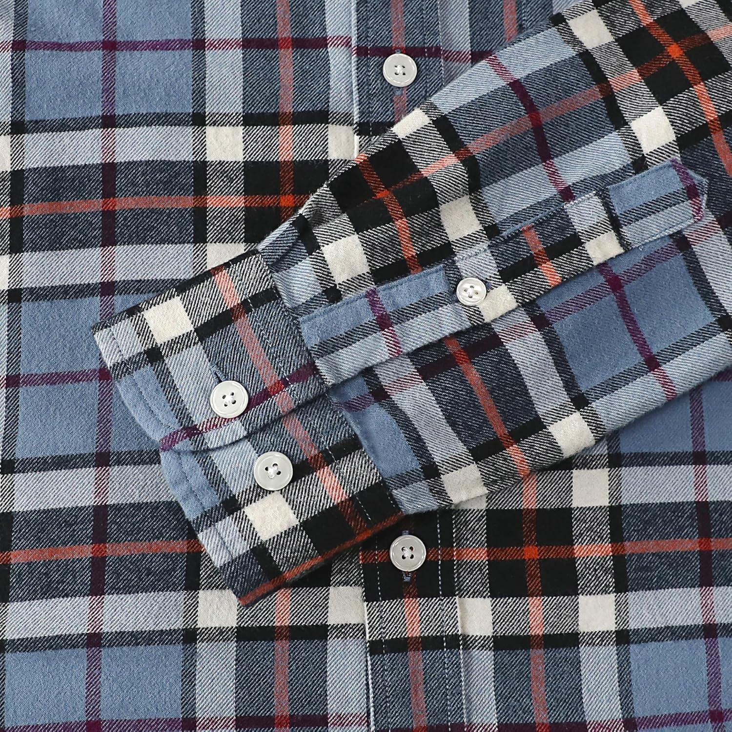 Dubinik® Flannel Shirt for Men 100% Cotton Mens Flannel Shirts Long Sleeve Plaid Soft Casual Button Down Shirt Men(Dusty Blue Black)