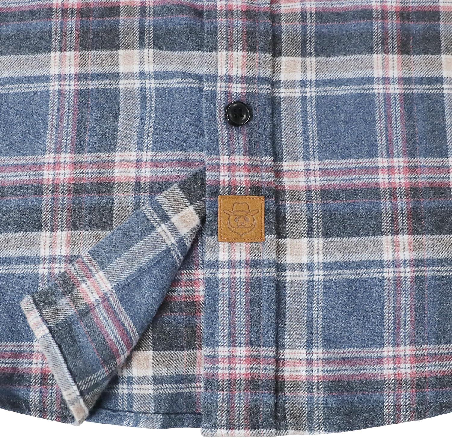 Dubinik® Flannel Shirt for Men 100% Cotton Mens Flannel Shirts Long Sleeve Plaid Soft Casual Button Down Shirt Men(Dusty Blue Red)