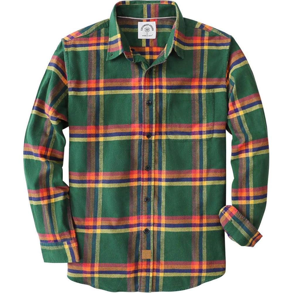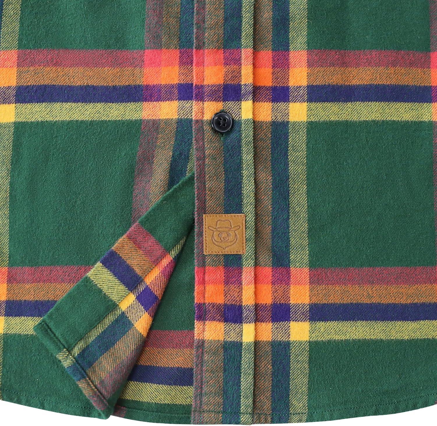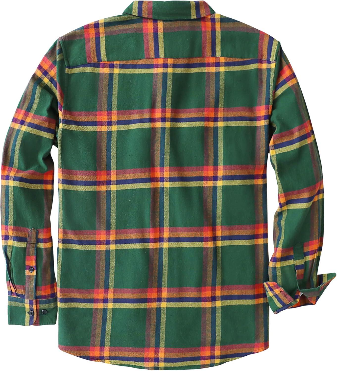 Dubinik® Flannel Shirt for Men 100% Cotton Mens Flannel Shirts Long Sleeve Plaid Soft Casual Button Down Shirt Men(Green Orange)