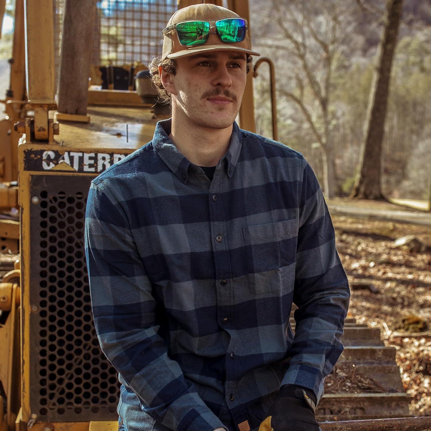 Dubinik® Flannel Shirt for Men 100% Cotton Mens Flannel Shirts Long Sleeve Plaid Soft Casual Button Down Shirt Men(Navy Buffalo)