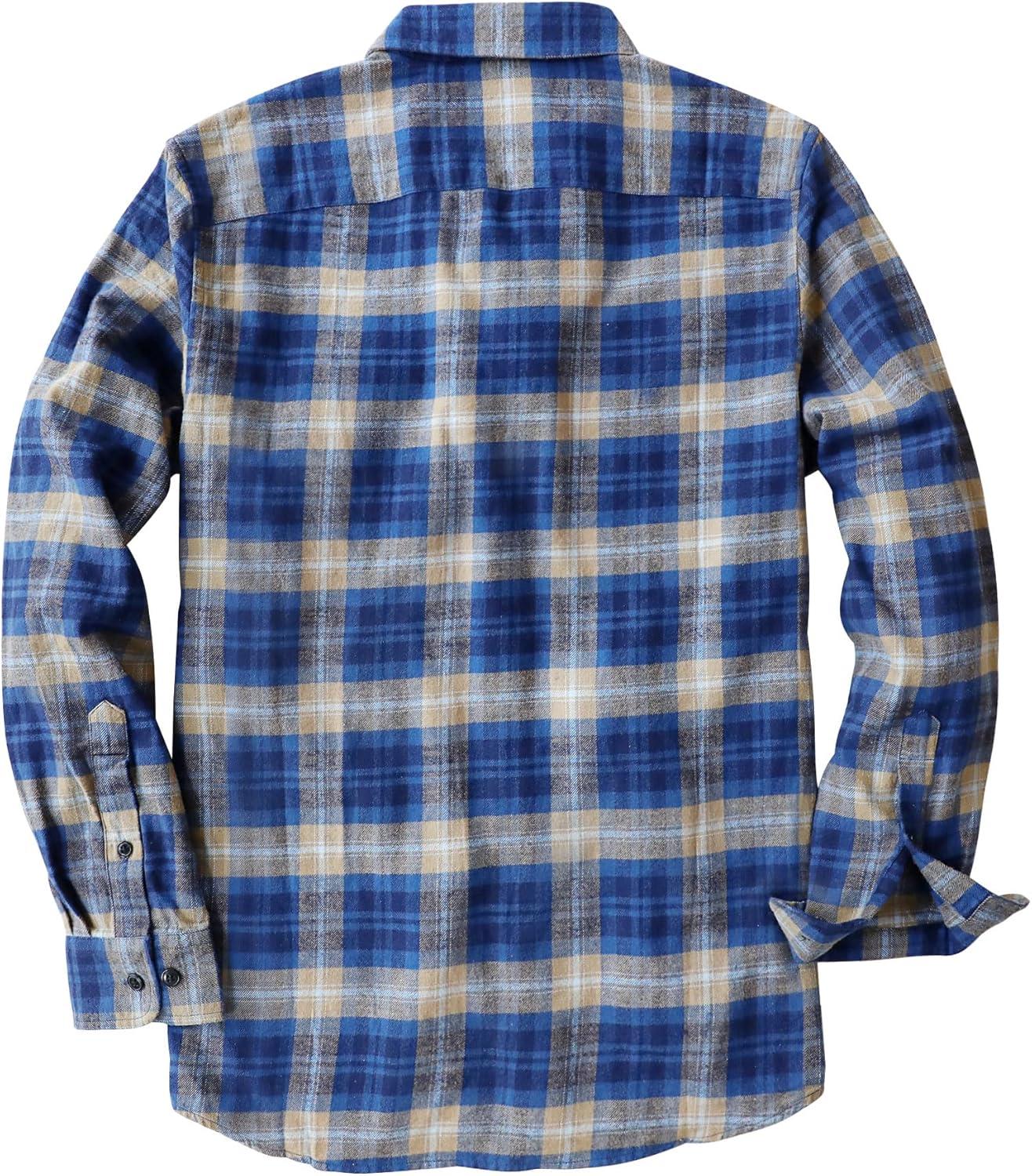 Dubinik® Flannel Shirt for Men 100% Cotton Mens Flannel Shirts Long Sleeve Plaid Soft Casual Button Down Shirt Men(Navy Khaki)