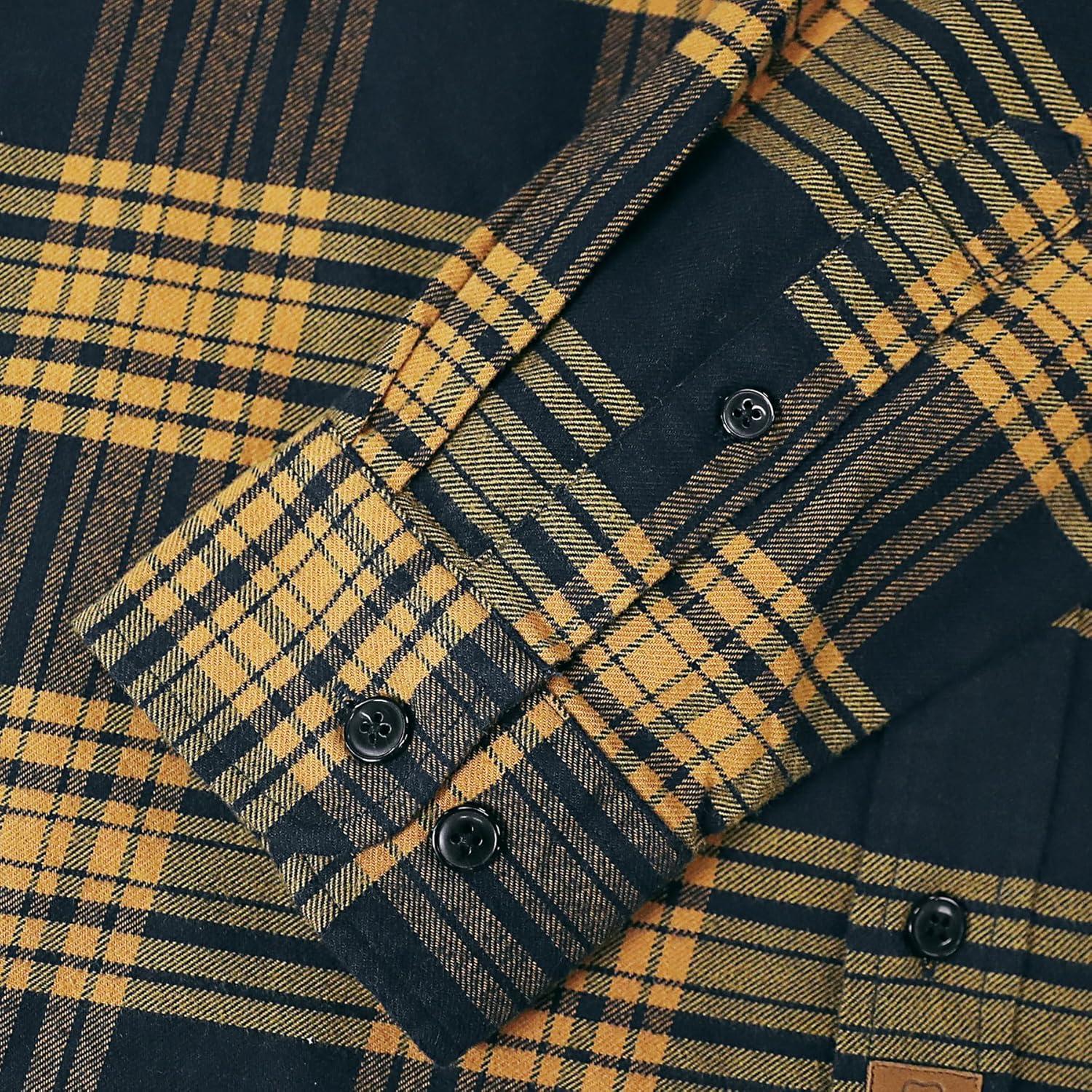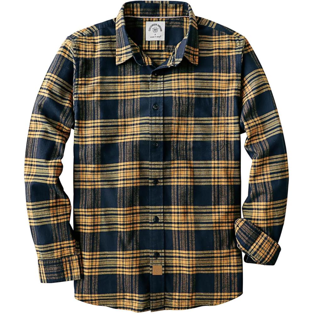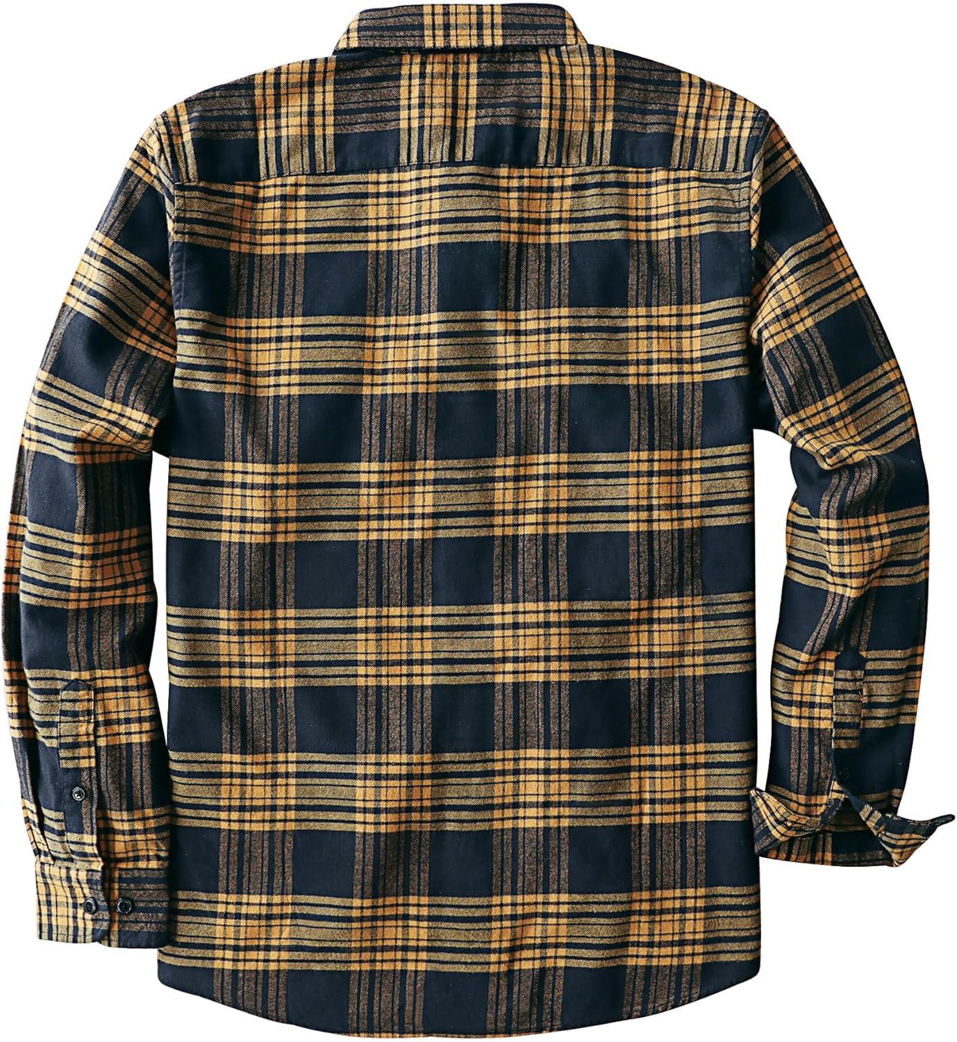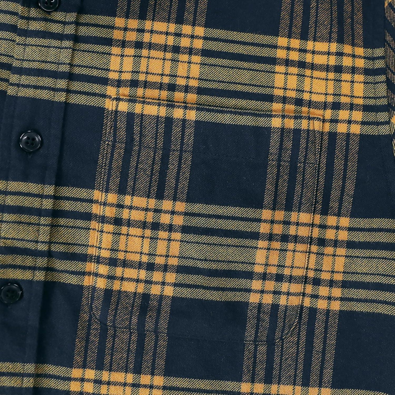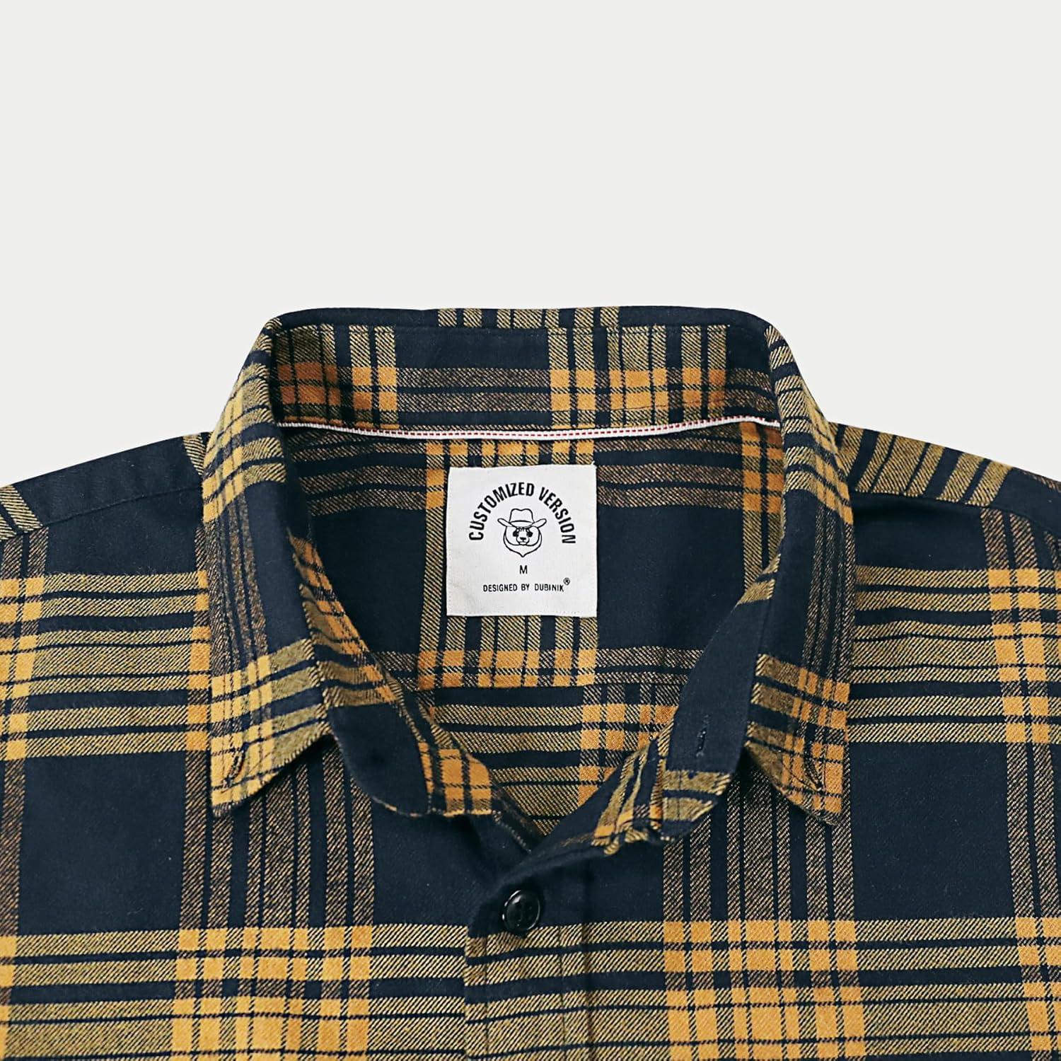 Dubinik® Flannel Shirt for Men 100% Cotton Mens Flannel Shirts Long Sleeve Plaid Soft Casual Button Down Shirt Men(Navy Yellow)