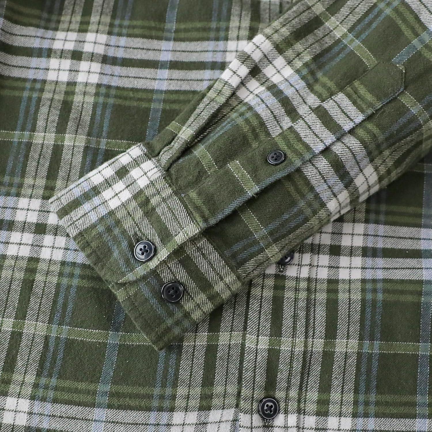 Dubinik® Flannel Shirt for Men 100% Cotton Mens Flannel Shirts Long Sleeve Plaid Soft Casual Button Down Shirt Men(Olive Green White)