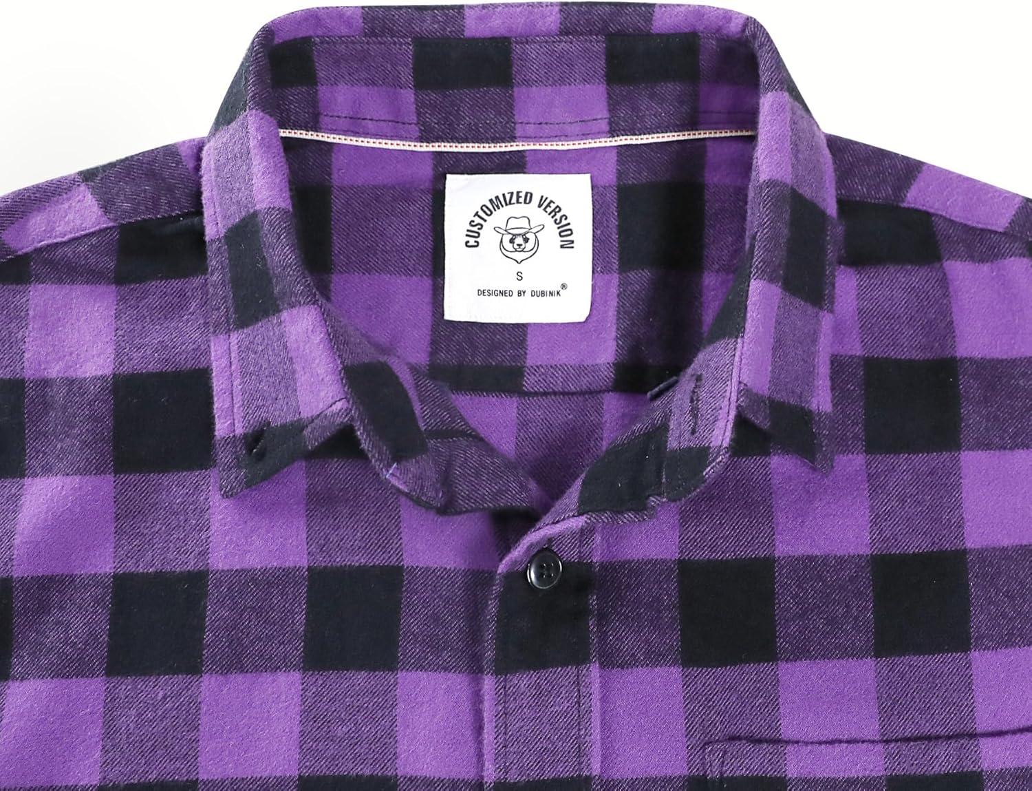Dubinik® Flannel Shirt for Men 100% Cotton Mens Flannel Shirts Long Sleeve Plaid Soft Casual Button Down Shirt Men(Purple Black)