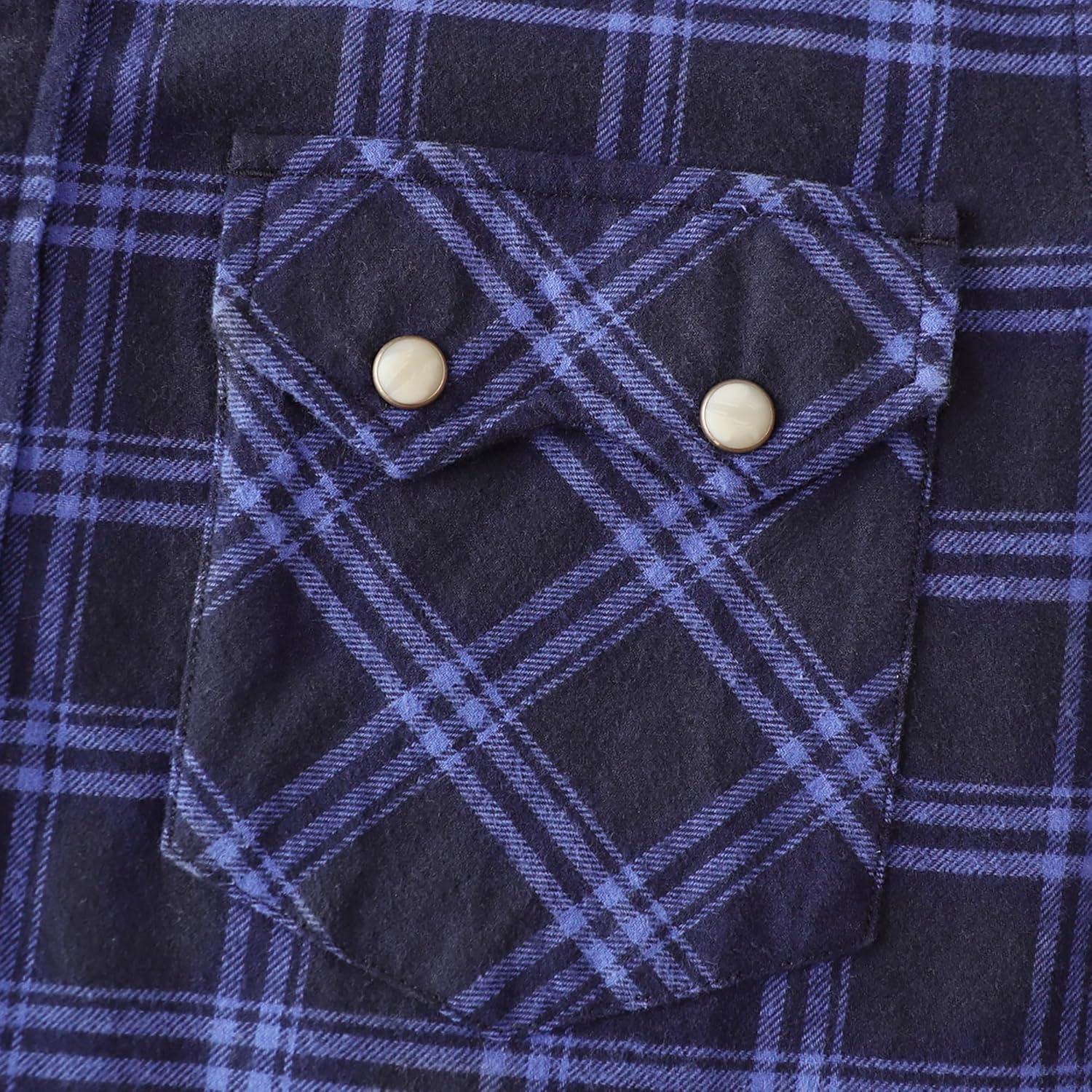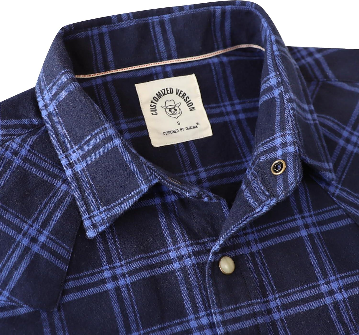 Dubinik® Flannel Shirt for Men Long Sleeve Casual Cozy Snap Button Western Plaid Shirts Soft Pure Cotton(Blue)