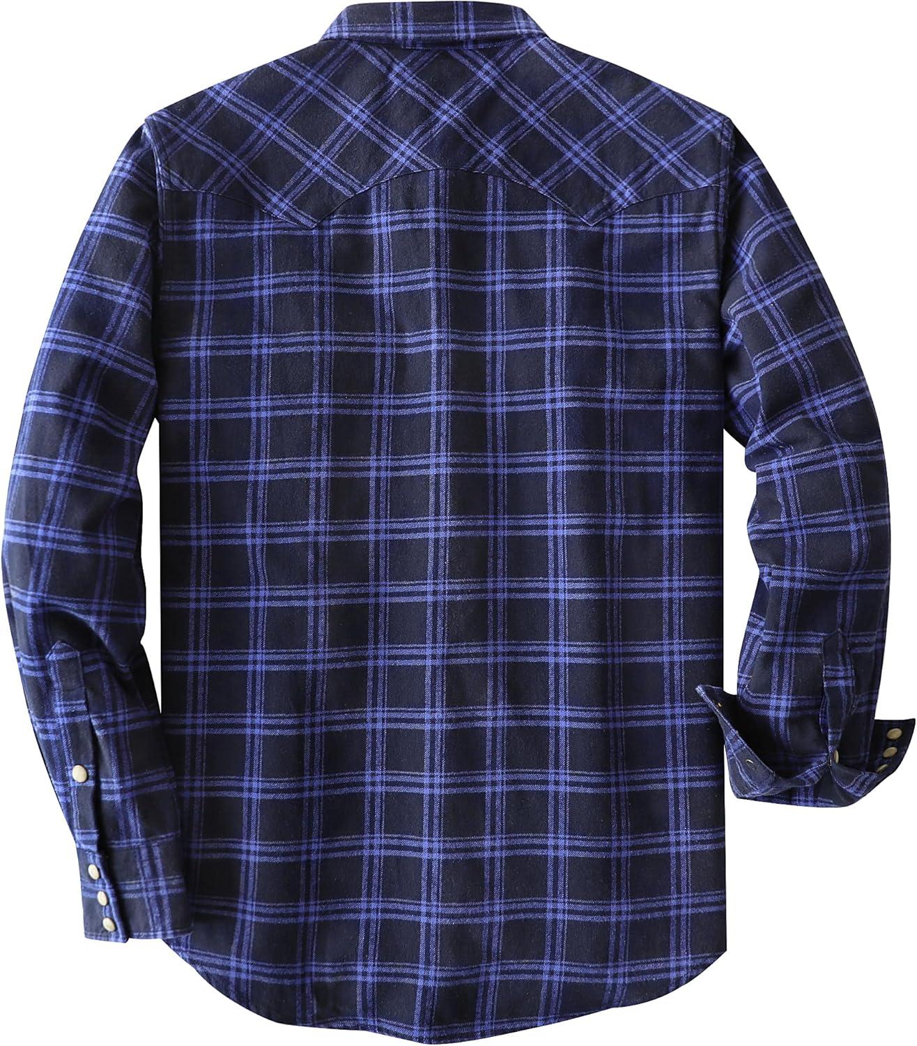 Dubinik® Flannel Shirt for Men Long Sleeve Casual Cozy Snap Button Western Plaid Shirts Soft Pure Cotton(Blue Black and Brown)