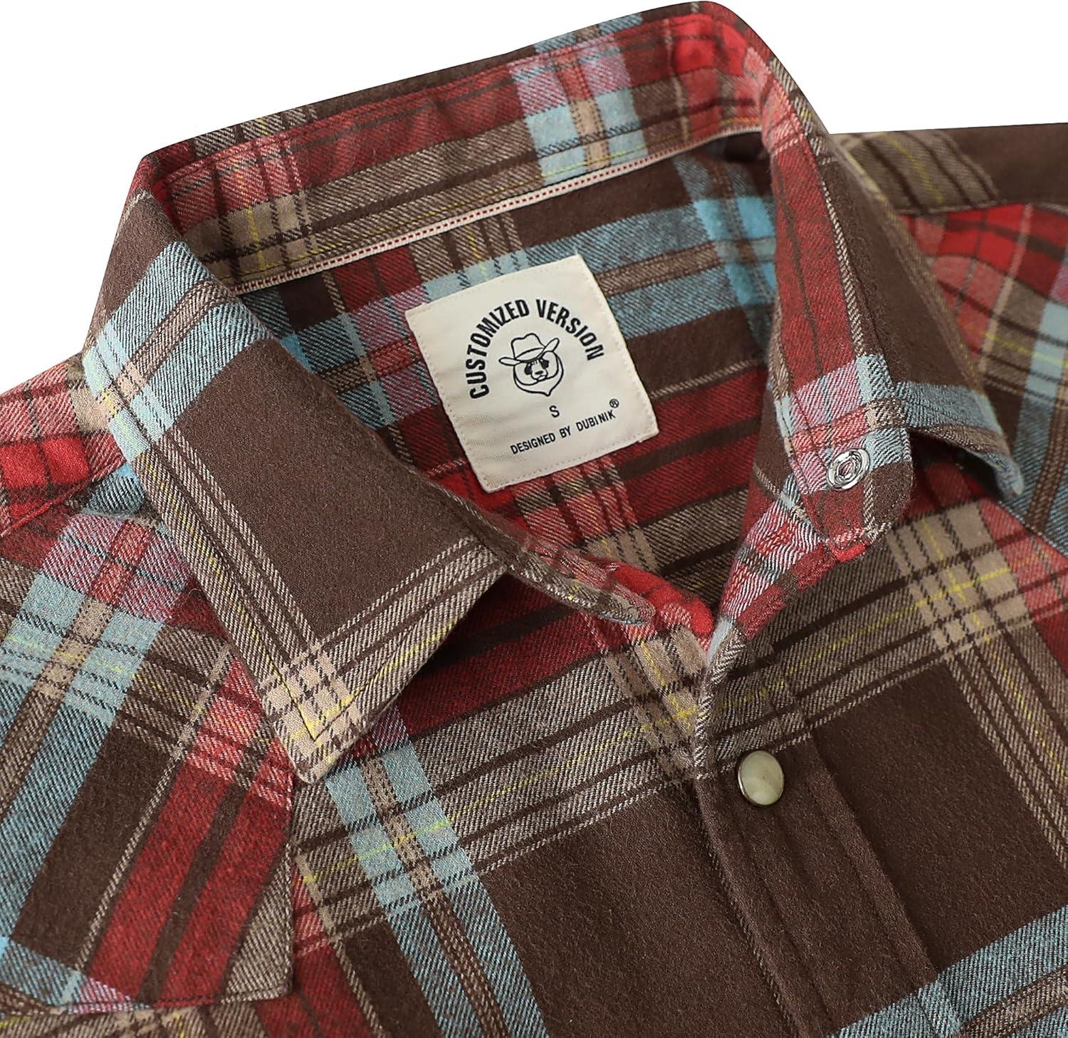 Dubinik® Flannel Shirt for Men Long Sleeve Casual Cozy Snap Button Western Plaid Shirts Soft Pure Cotton(Red White and Black)