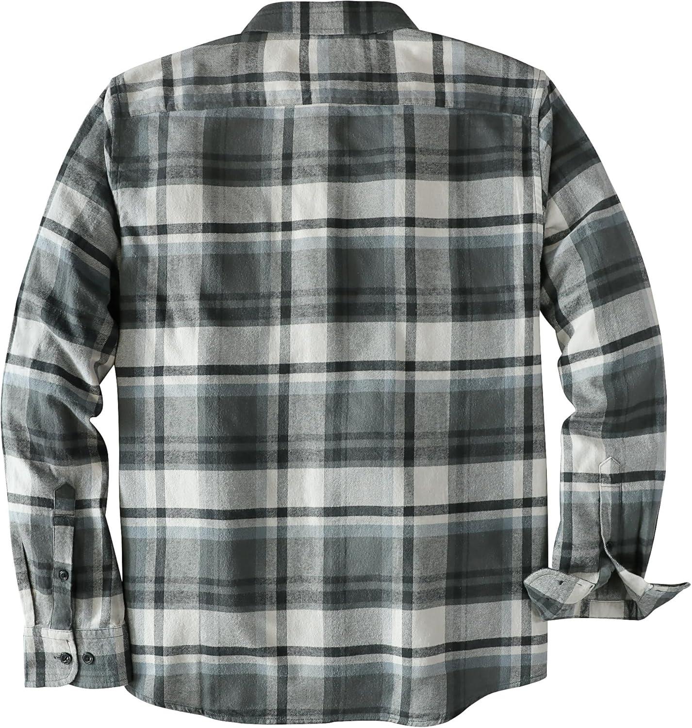 Dubinik® Flannel Shirt for Men Plaid Mens Button Down Long Sleeve Shirts Cotton Casual(A Dark Grey and White)