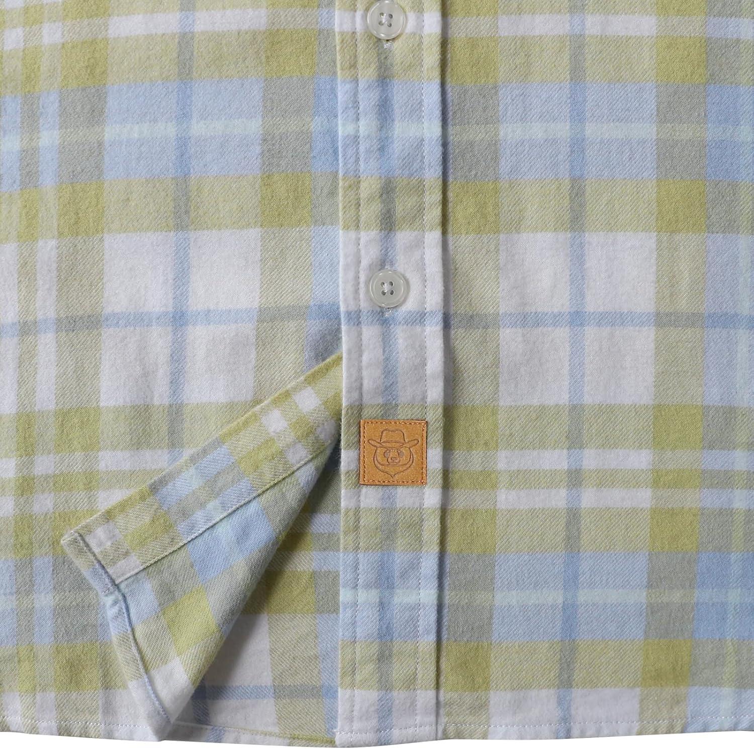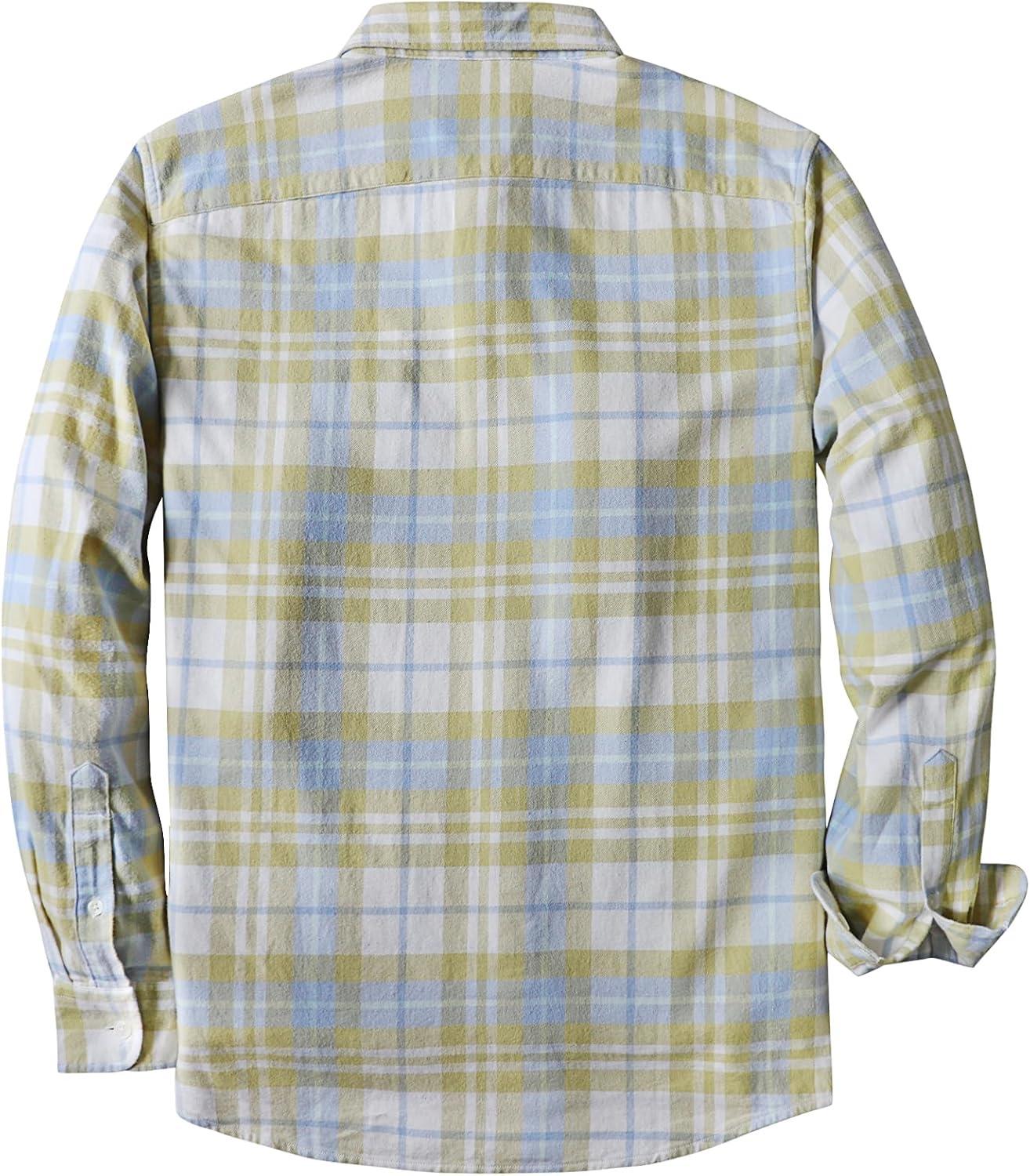 Dubinik® Flannel Shirt for Men Plaid Mens Button Down Long Sleeve Shirts Cotton Casual(A Light Yellow and White Plaid)