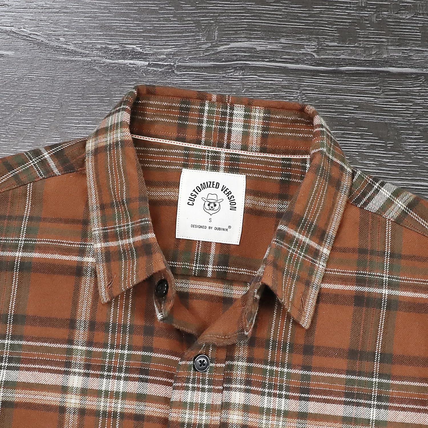 Dubinik® Flannel Shirt for Men Plaid Mens Button Down Long Sleeve Shirts Cotton Casual(A Plaid Barnwood)