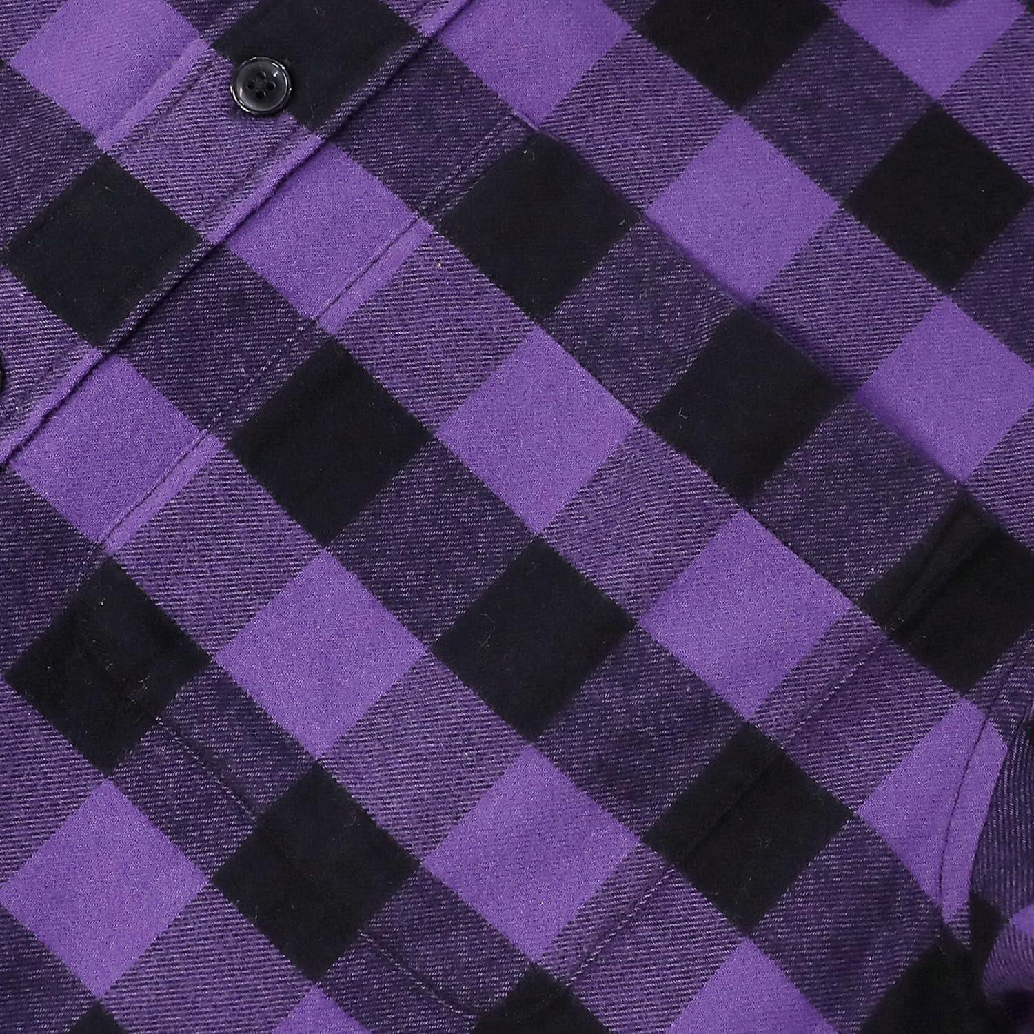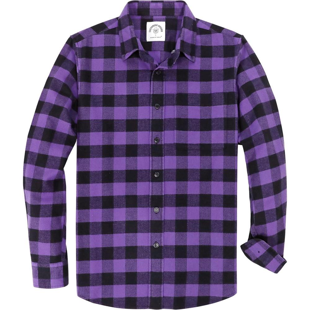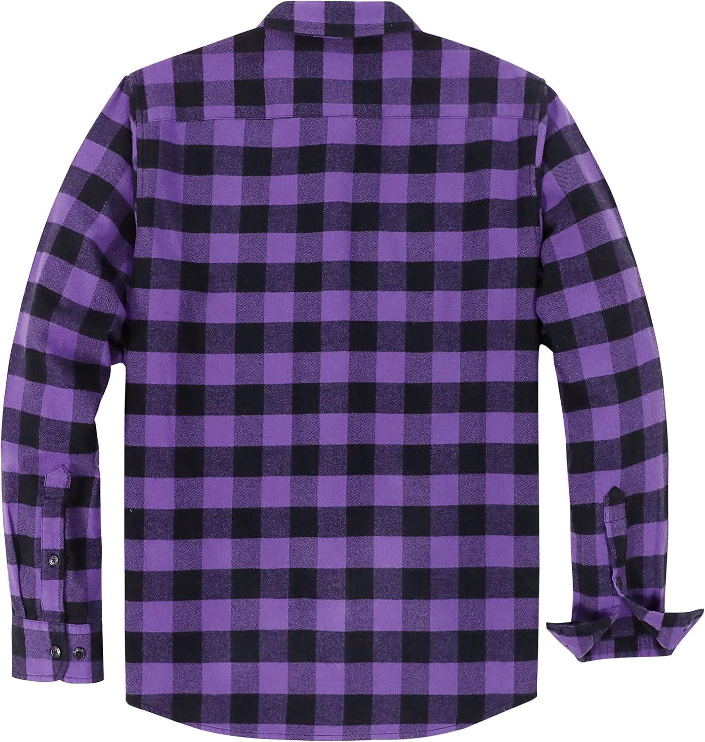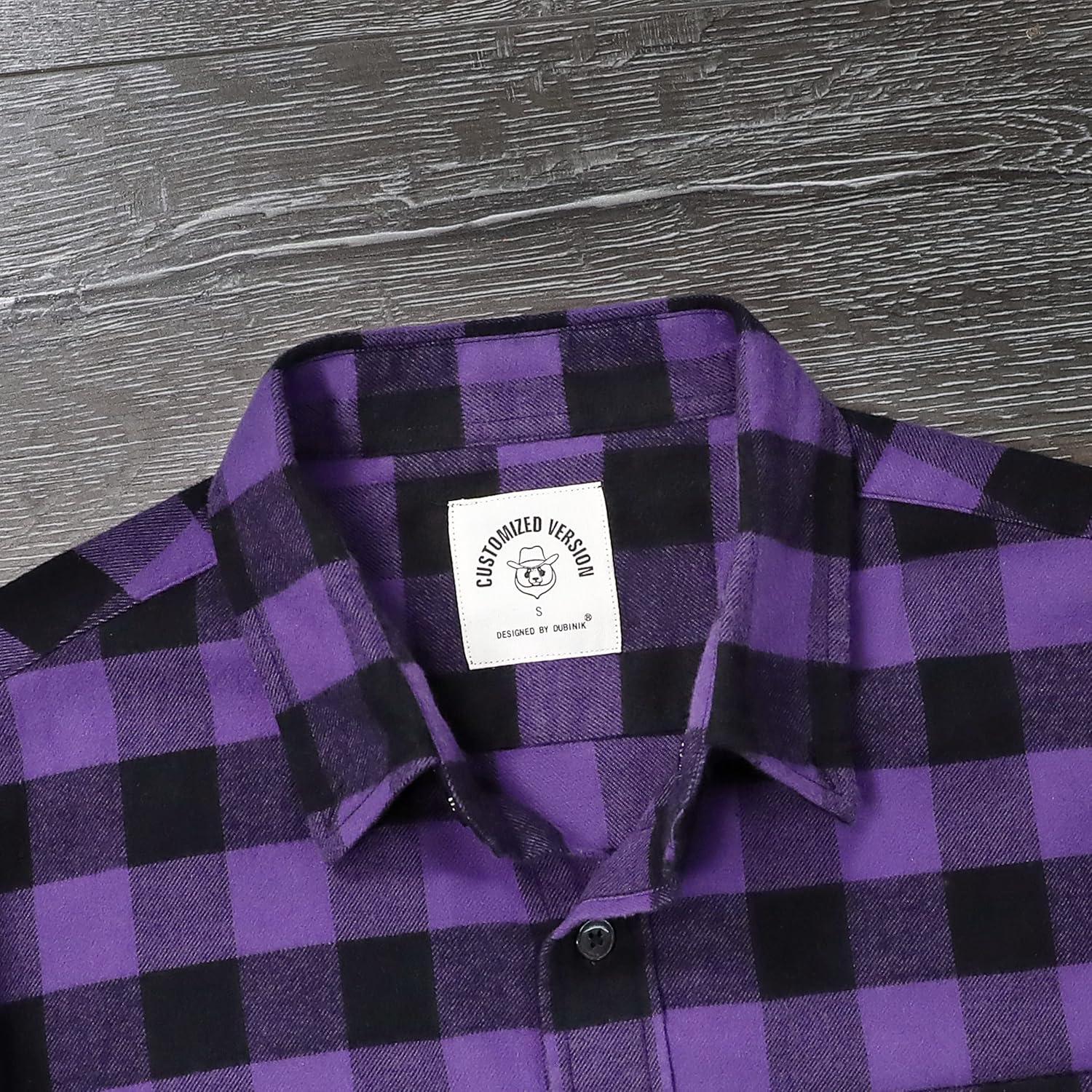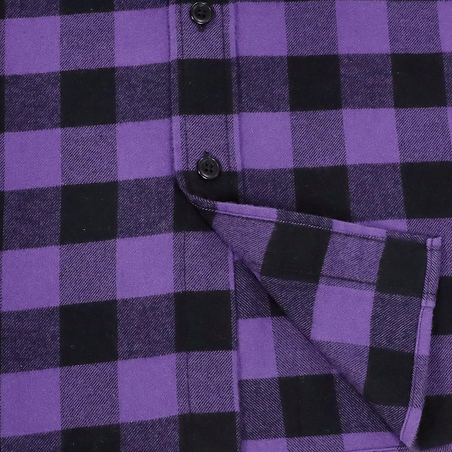 Dubinik® Flannel Shirt for Men Plaid Mens Button Down Long Sleeve Shirts Cotton Casual(A Purple Black)