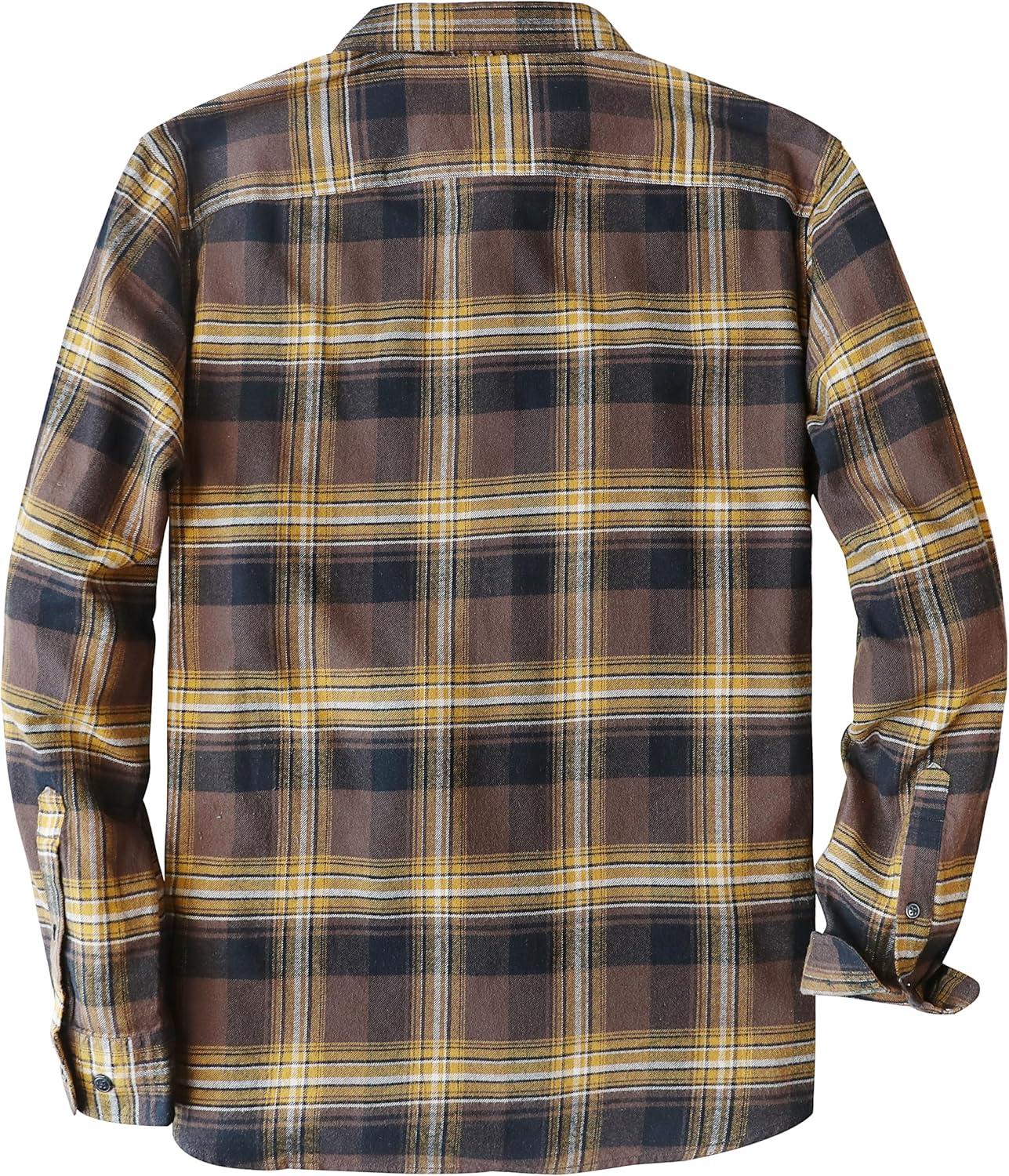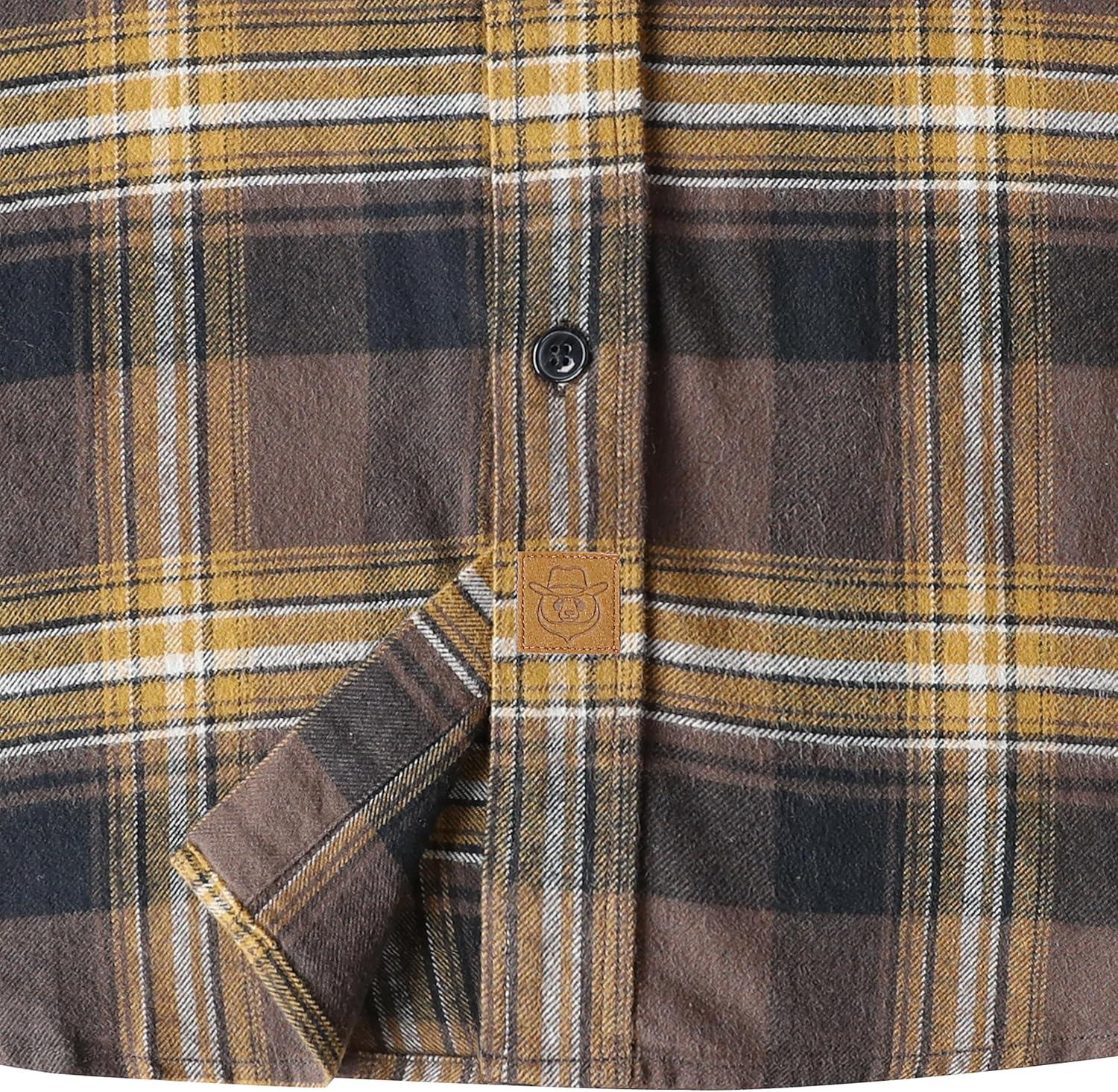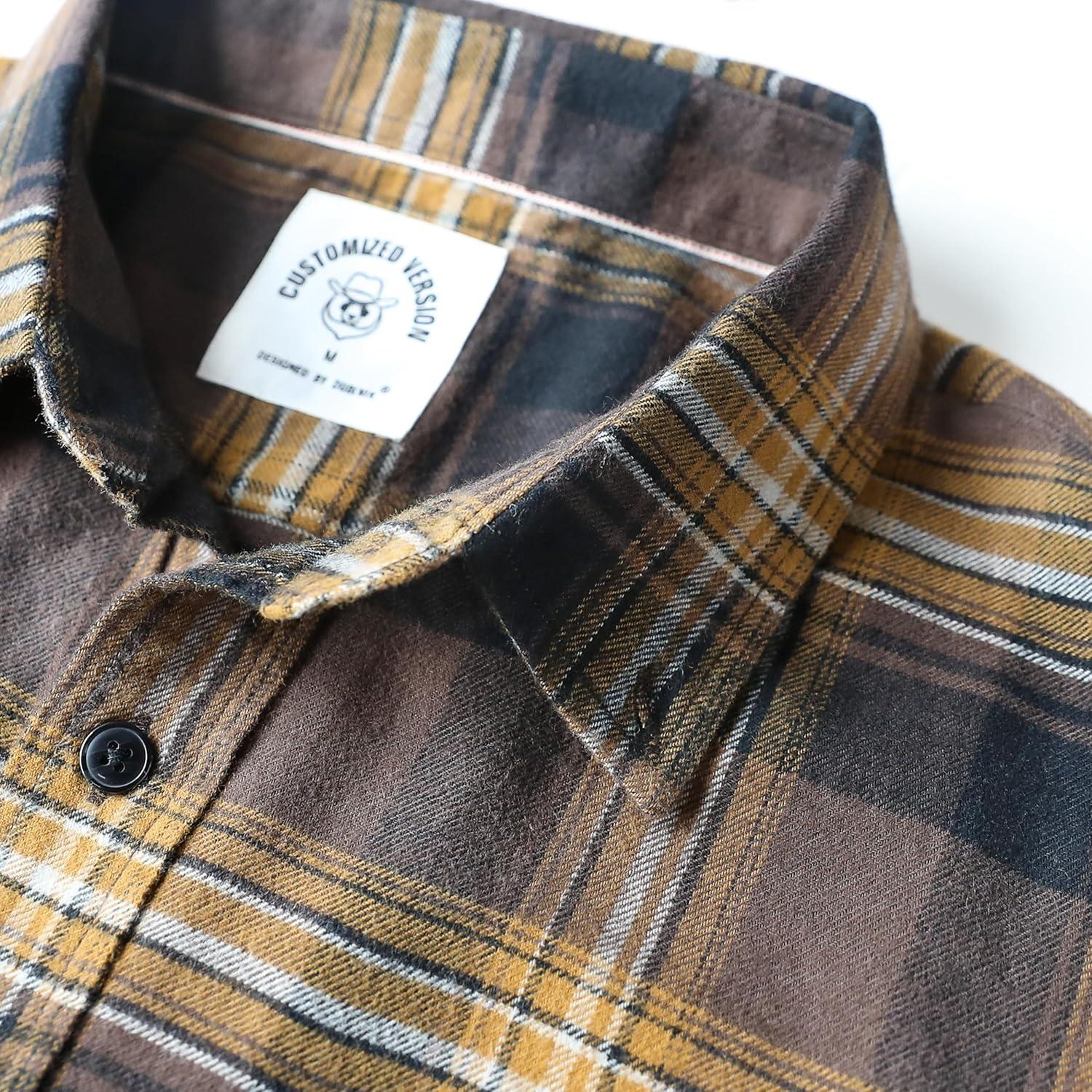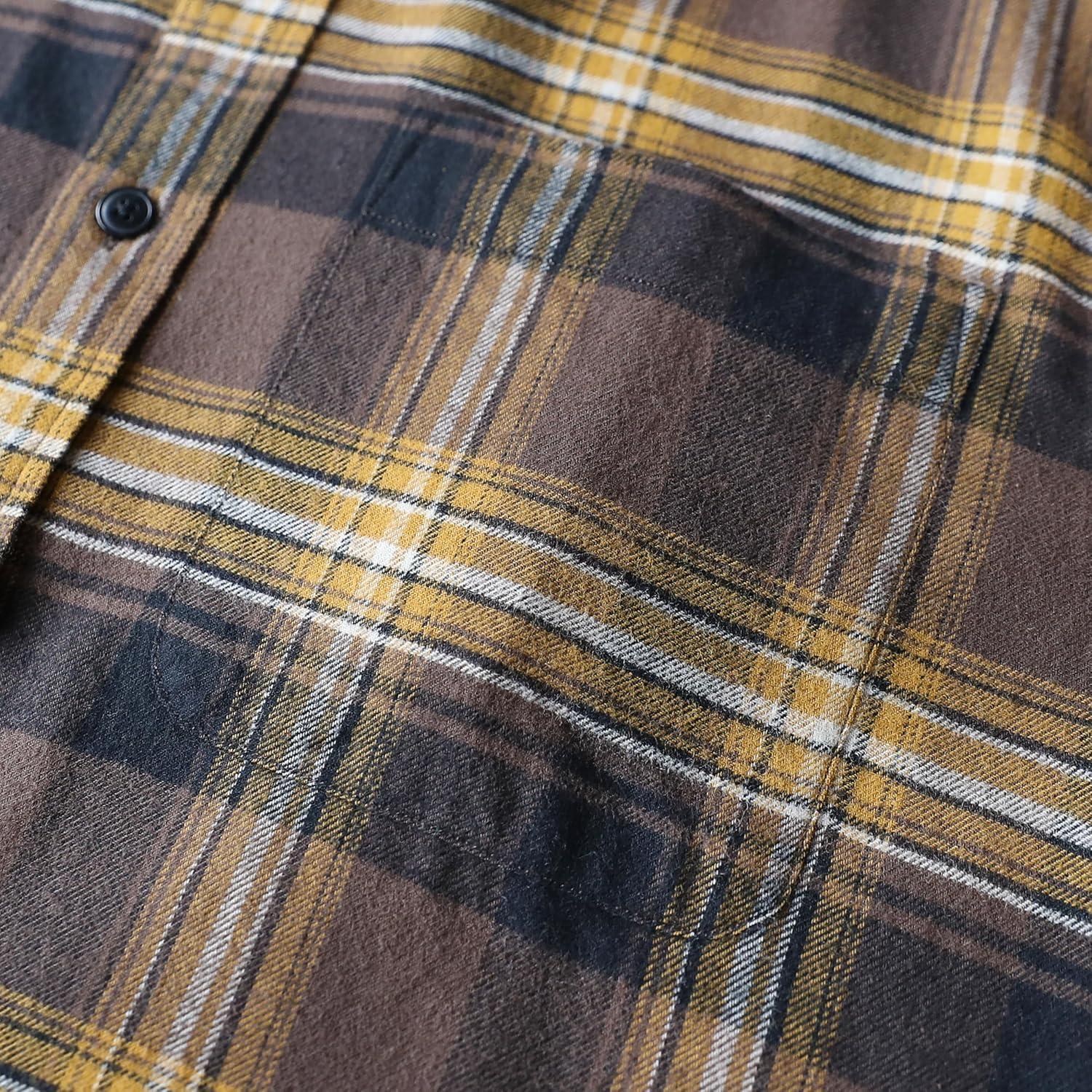 Dubinik® Flannel Shirt for Men Plaid Mens Button Down Long Sleeve Shirts Cotton Casual(A Yellow and Bronze)
