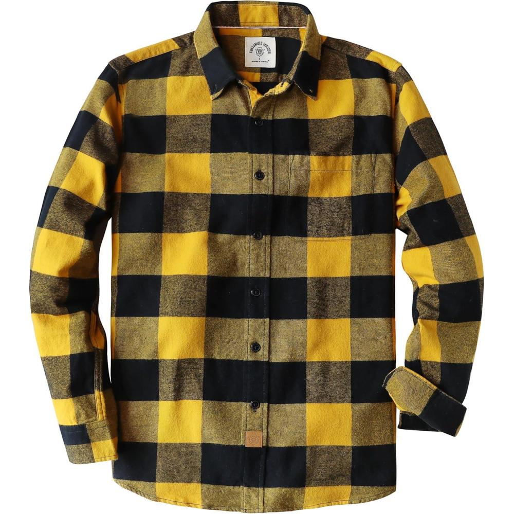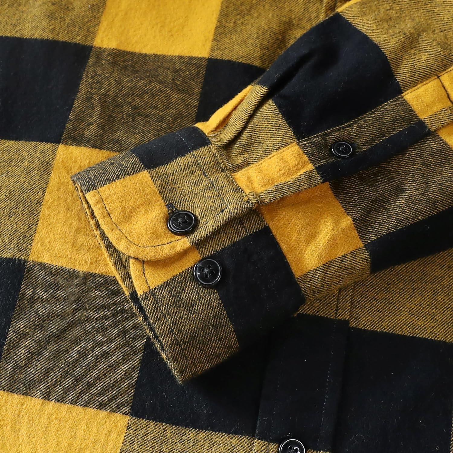 Dubinik® Flannel Shirt for Men Plaid Mens Button Down Long Sleeve Shirts Cotton Casual(Black Yellow)