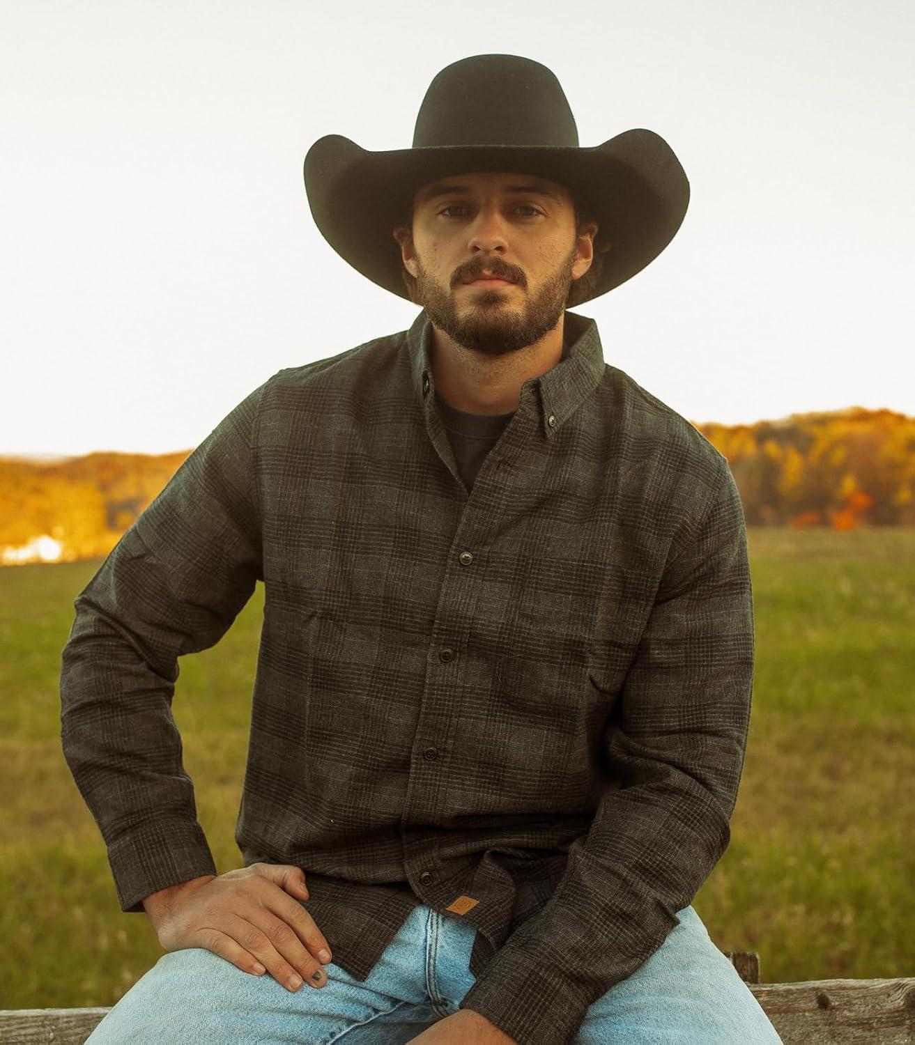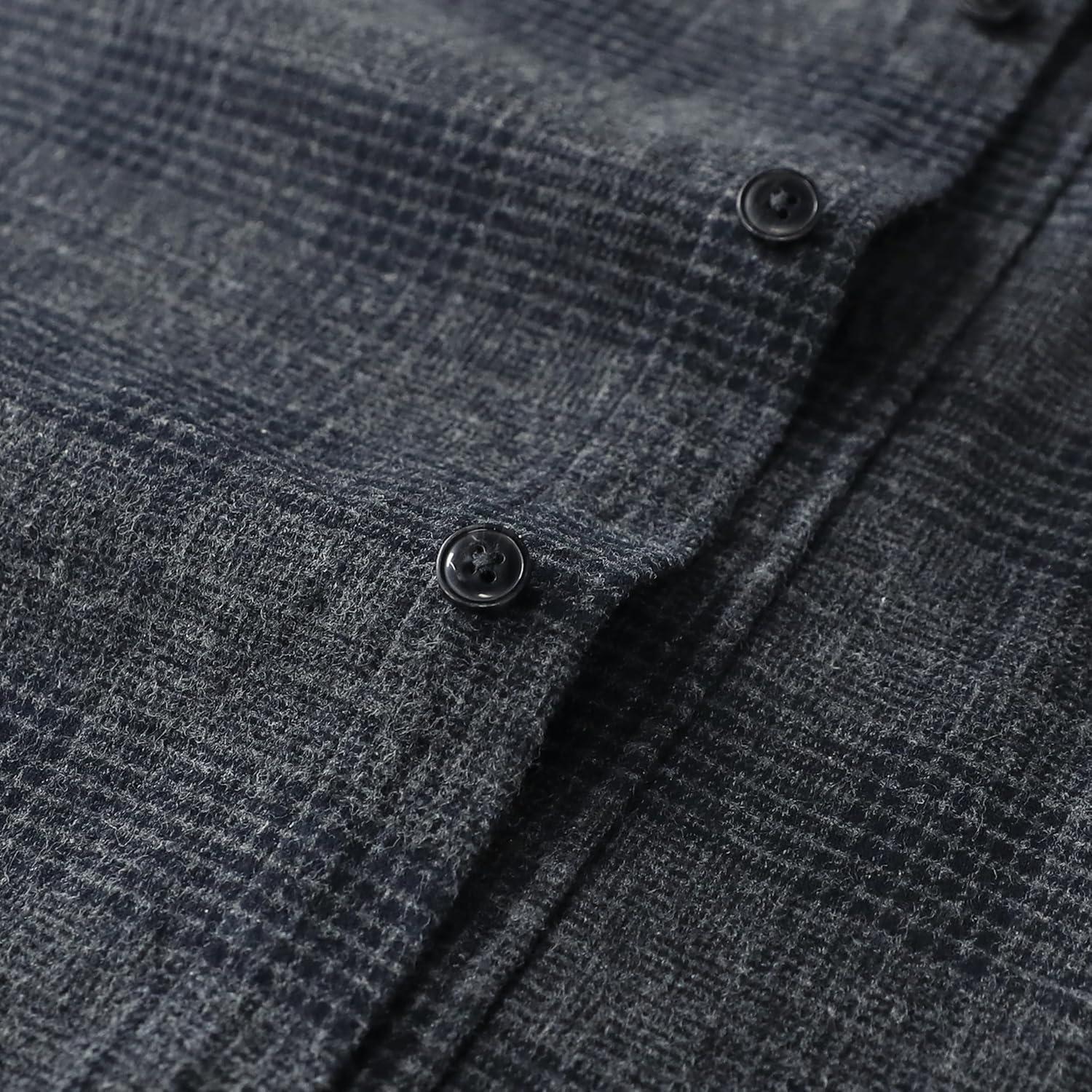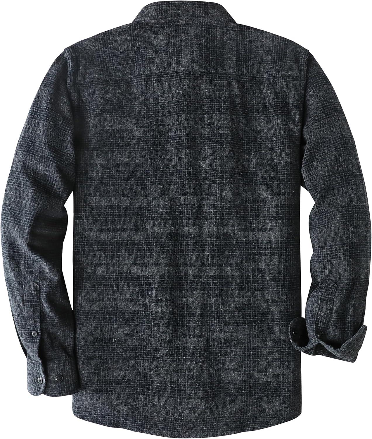 Dubinik® Flannel Shirt for Men Plaid Mens Button Down Long Sleeve Shirts Cotton Casual(Grey Black)
