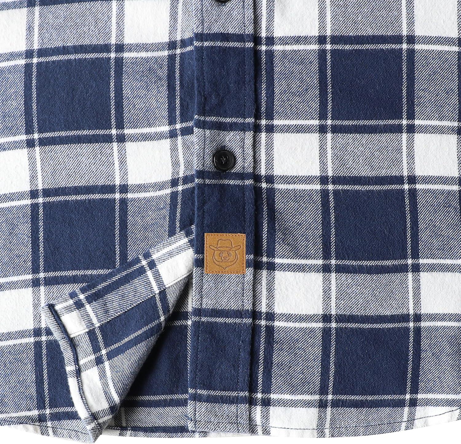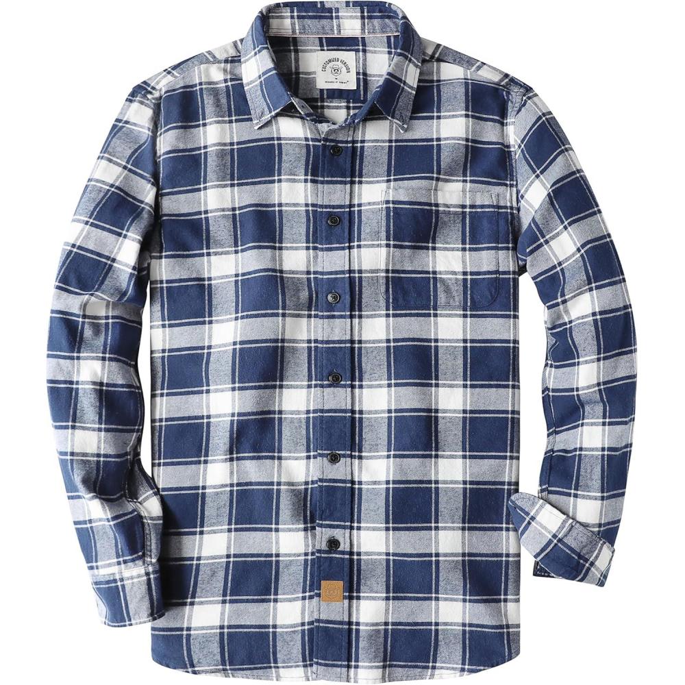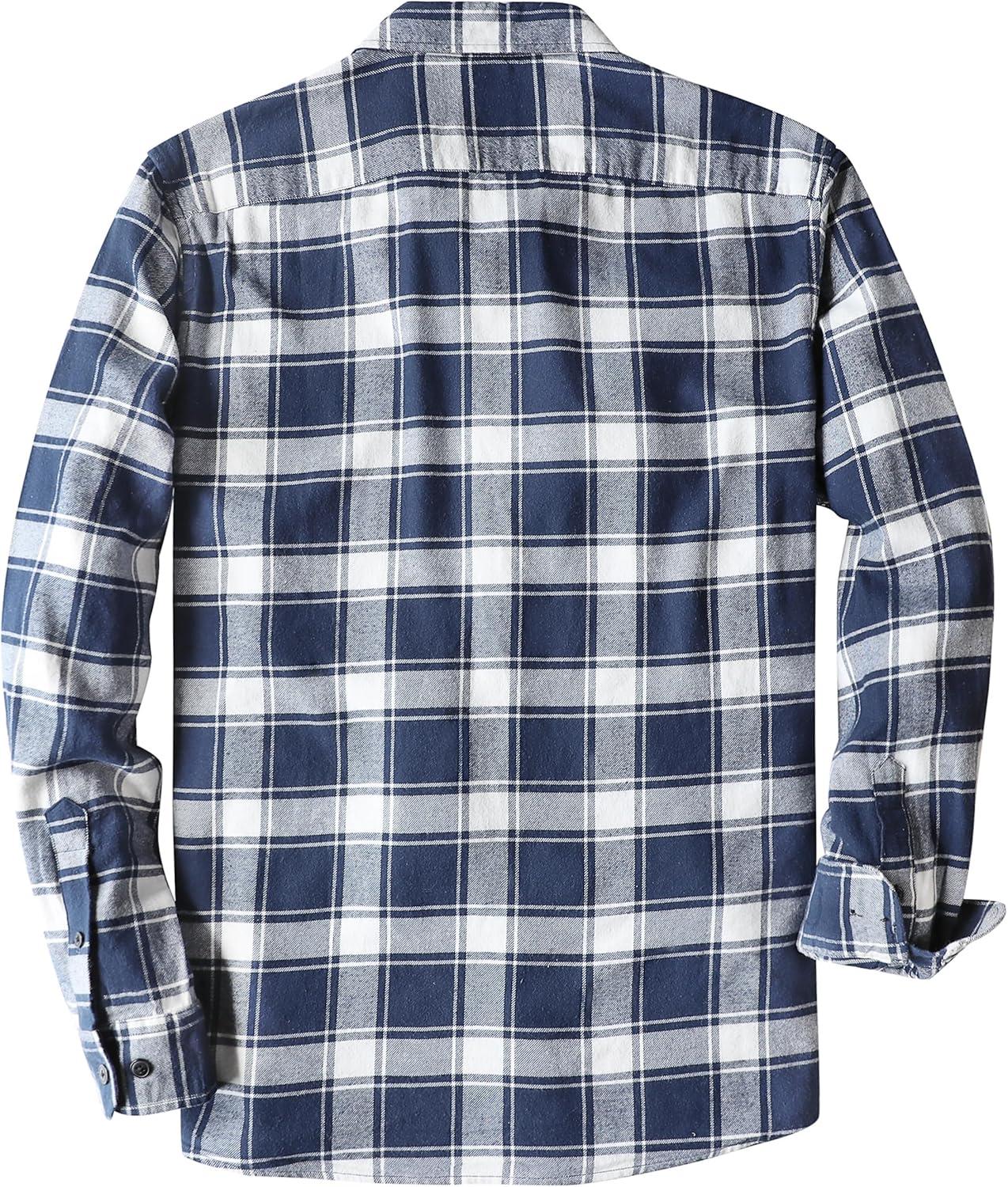 Dubinik® Flannel Shirt for Men Plaid Mens Button Down Long Sleeve Shirts Cotton Casual(White Navy Blue)