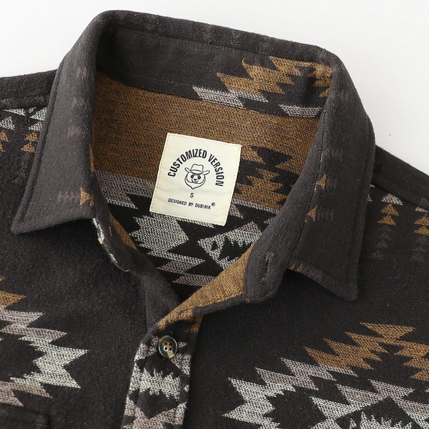 Dubinik® Mens Flannel Shirt Long Sleeve Button Down Plaid All Cotton Soft Brushed Flannel Shirt for Men Utility Casual Shirt(Aztec Brown)