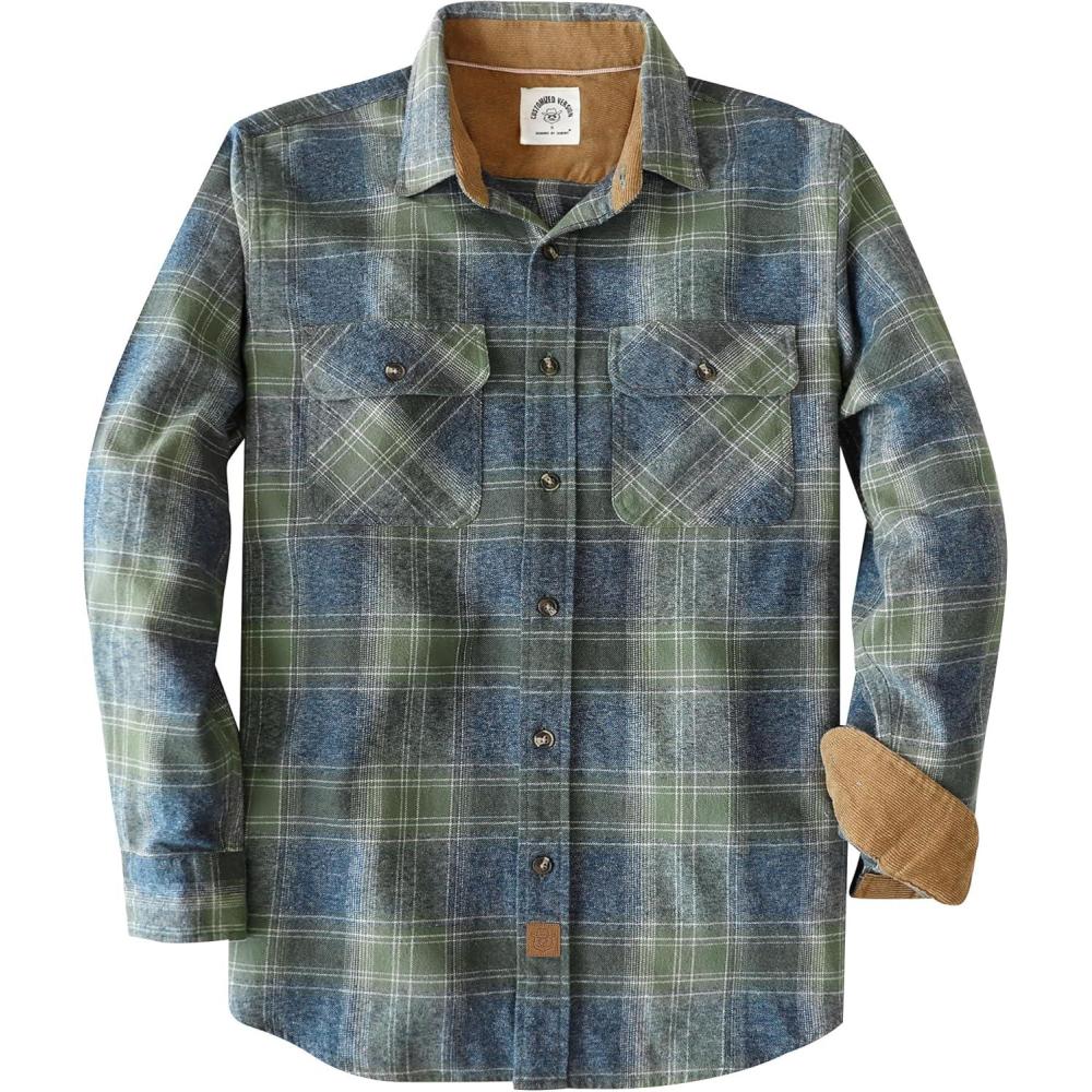 Dubinik® Mens Flannel Shirt Long Sleeve Button Down Plaid All Cotton Soft Brushed Flannel Shirt for Men Utility Casual Shirt(Blue and Sage Green)