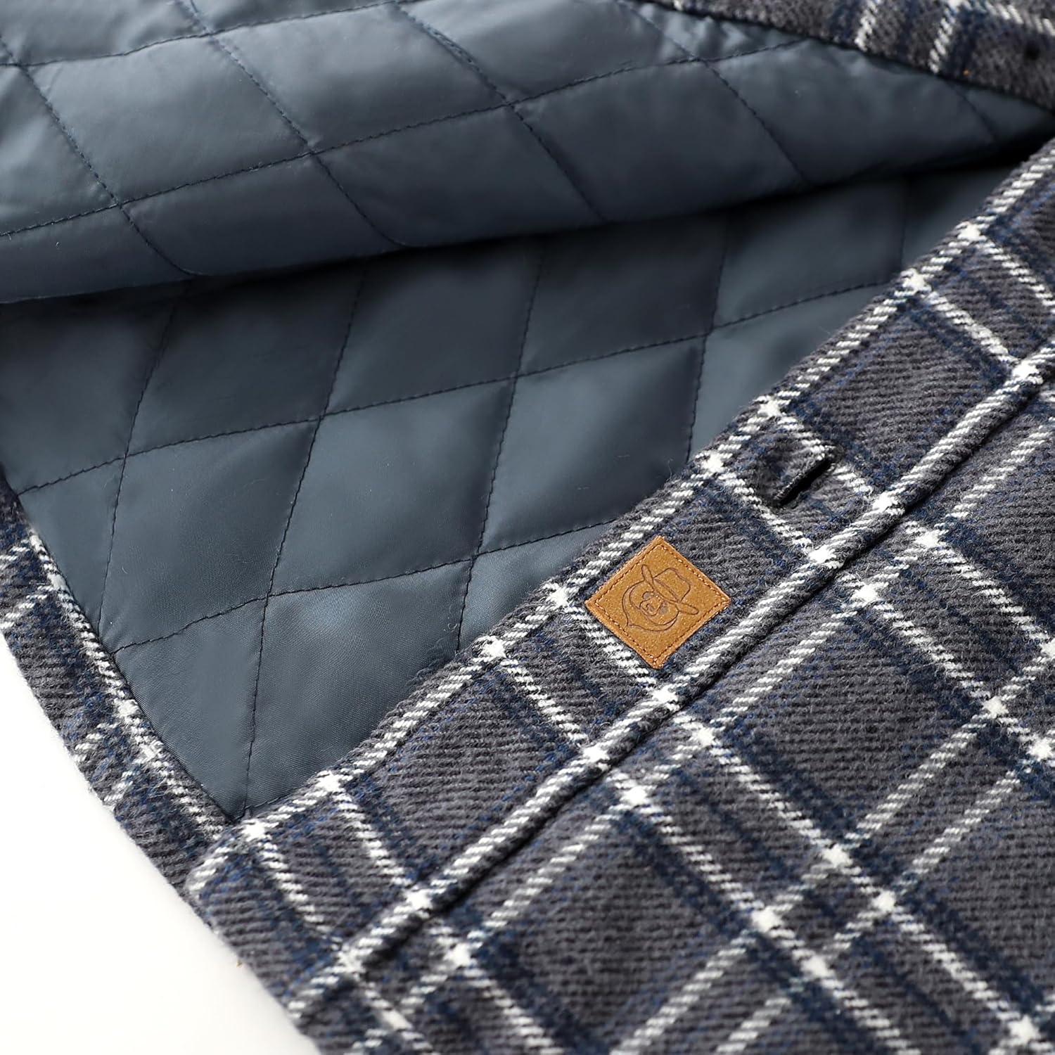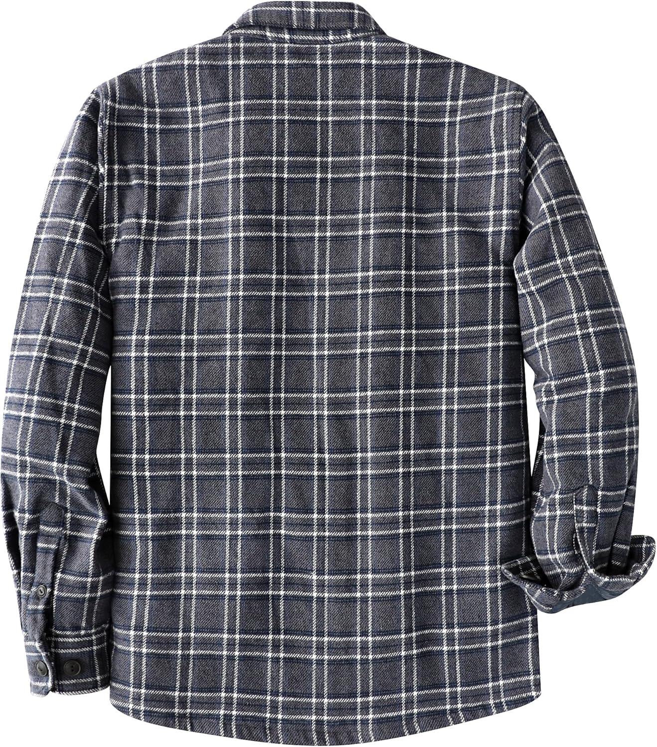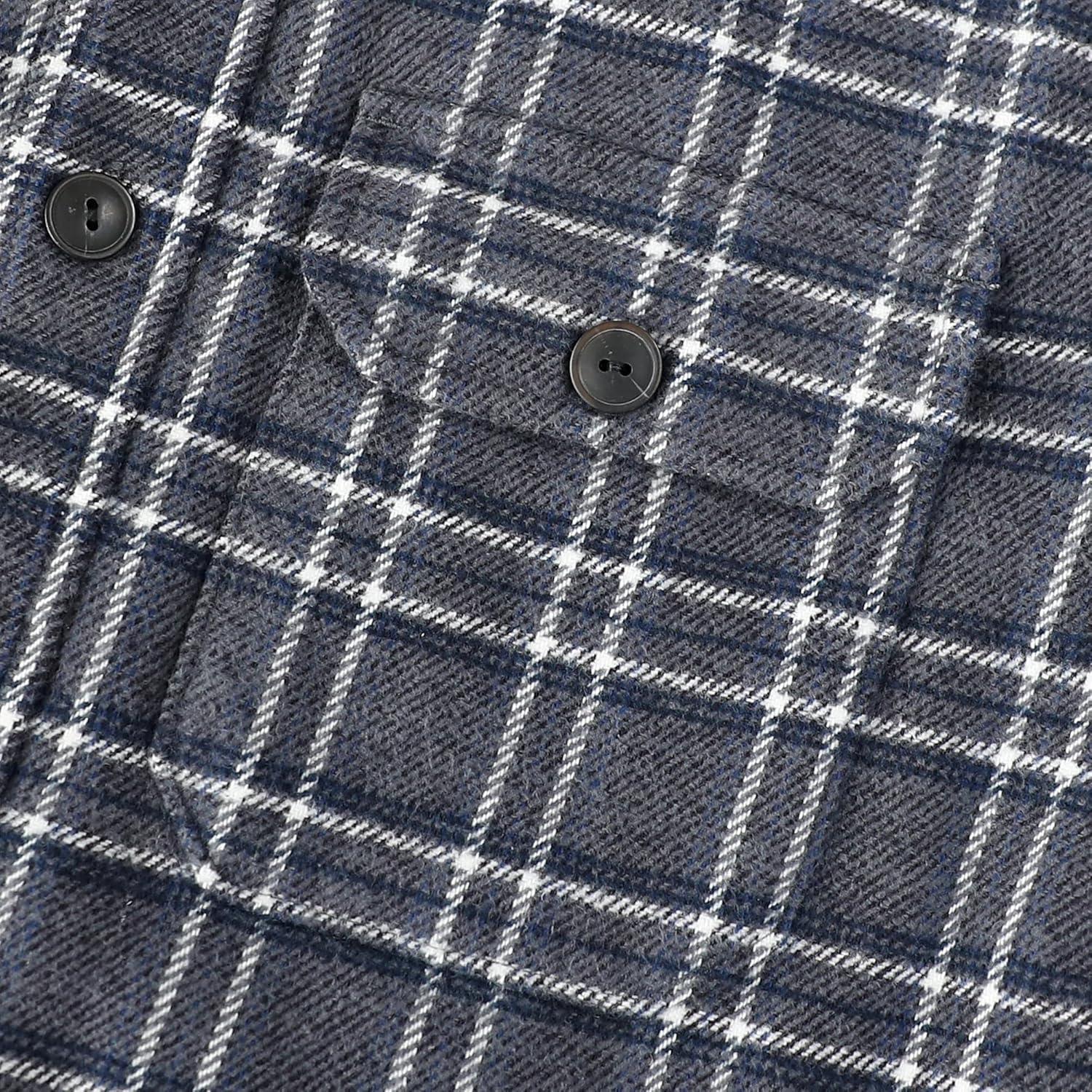 Dubinik® Mens Shacket Flannel Shirt For Men Lightweight Jacket Overshirt Warm Lined Coats Casual Plaid Long Sleeve Button(Gray White and Blue 182)