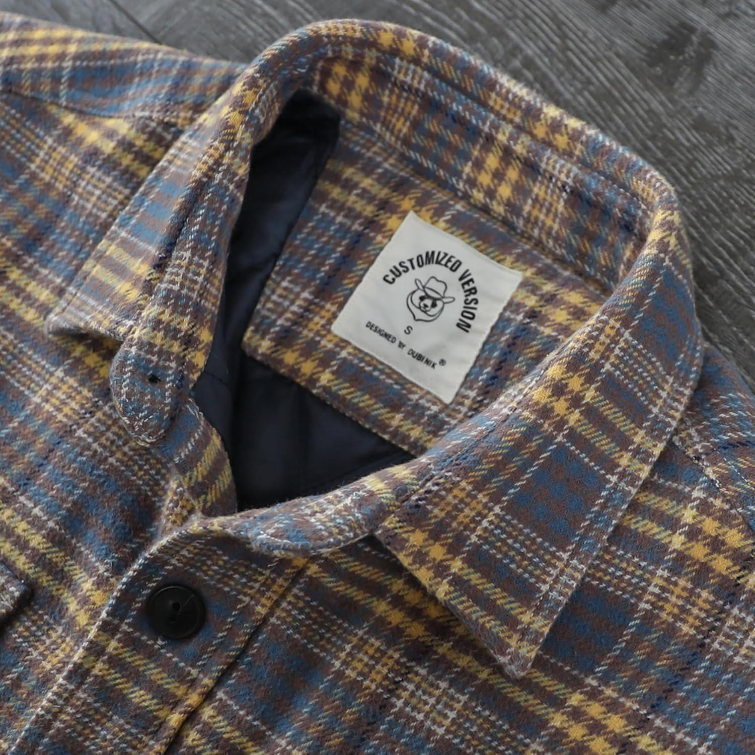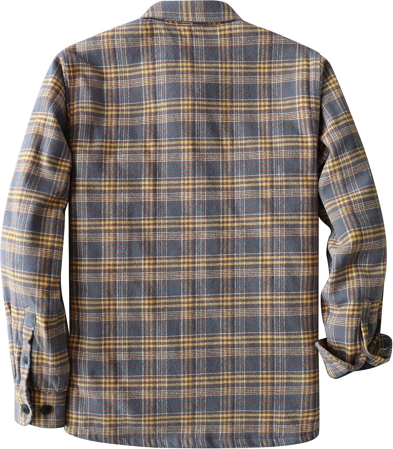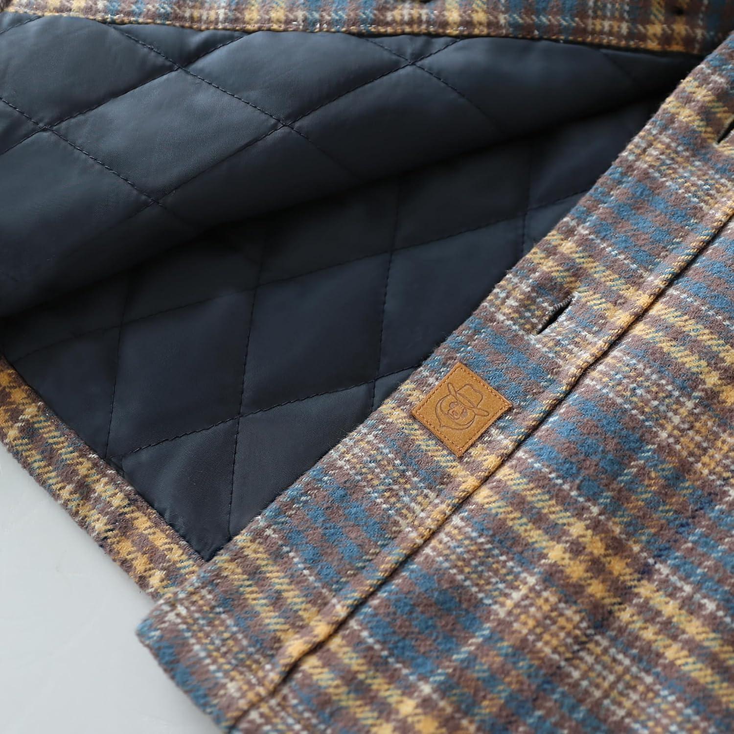Dubinik® Mens Shacket Flannel Shirt For Men Lightweight Jacket Overshirt Warm Lined Coats Casual Plaid Long Sleeve Button(Yellow Blue and Khaki 182)